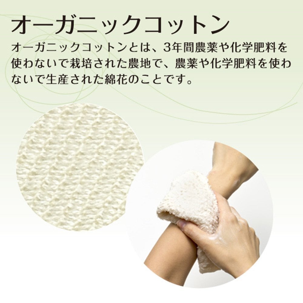 古くからの織物産地である泉州地方で、丁寧に織られたオーガニックコットン100%のボディタオルです。