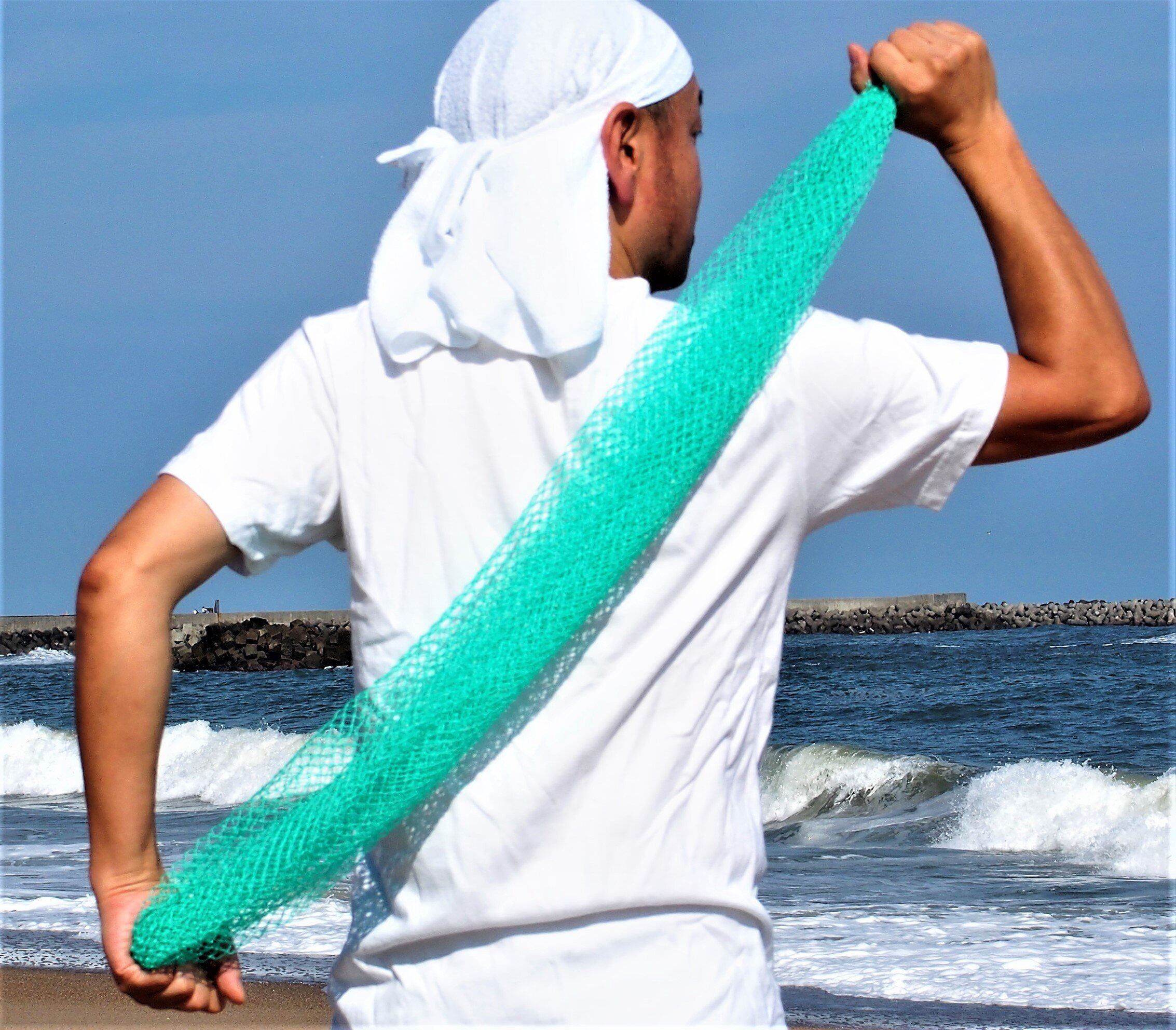 茨城県大洗町の漁網メーカーが手作りで製作しております。使い心地に定評のあるしっかりした作りの洗い網です。本品の「堅さ」はボディータオルで言うと「超堅め」です。堅めのボディータオルをお探しの方に必ずご満足頂ける洗い心地です。