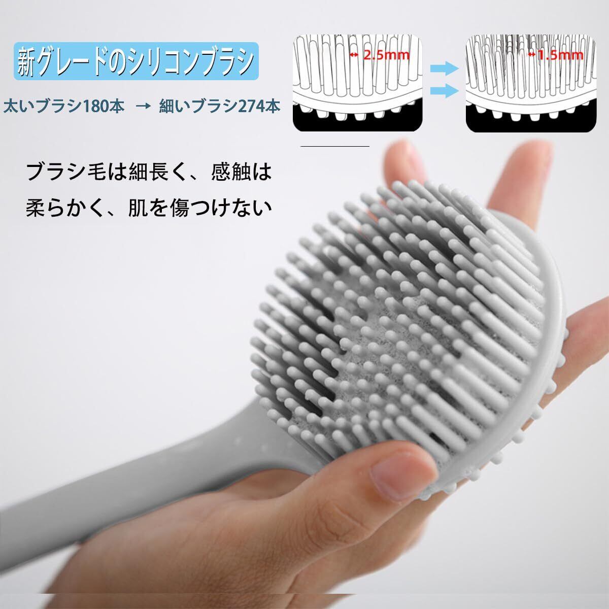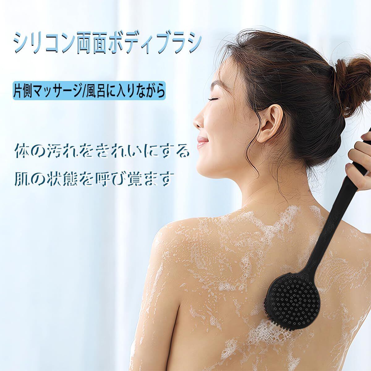 【特価セール】ボディブラシ 両面ブラシ マッサージ シリカゲルボディブラシ 背中ニキビ ケア 背中 ボディブラシ 長い柄 背中洗い ボディーブラシ 柔らかい 濃密泡 臭わない カビが生えにくい 滑りにくい お風呂 美肌 女性 男性 (ブラック274本のブラシ)