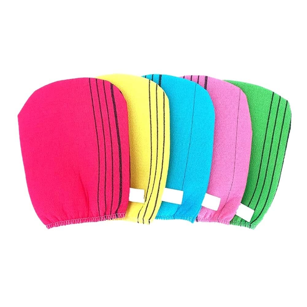 あかすりタオル アカスリ ミトン グリーン 約縦18×横13cm 韓国式 あかすり ボディタオル 風呂 体洗い 5枚セット ランダムカラー