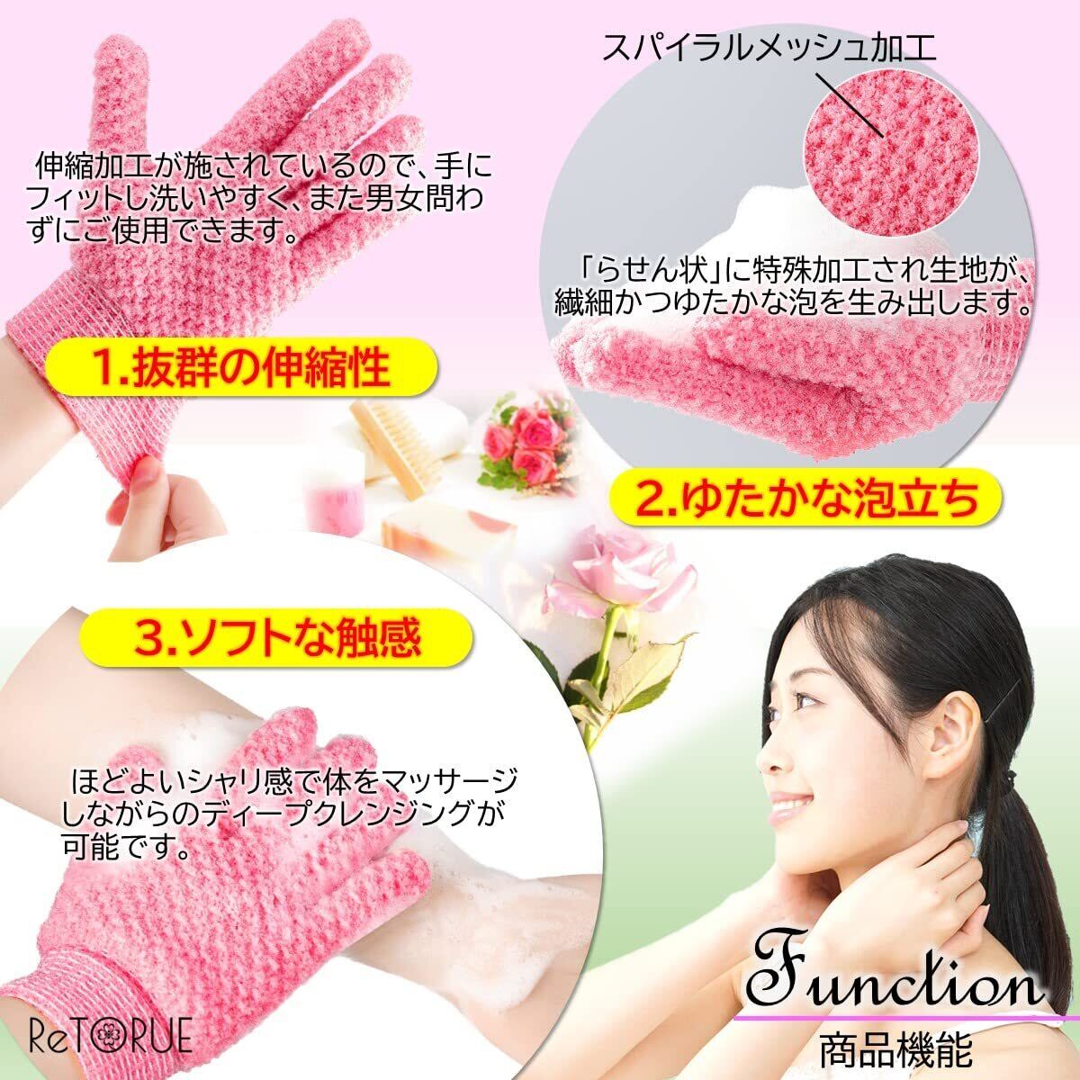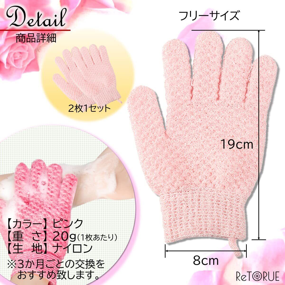 ReTORUE バスグローブ からだあらう タオル 体洗うタオル ナイロンタオル (ピンク)