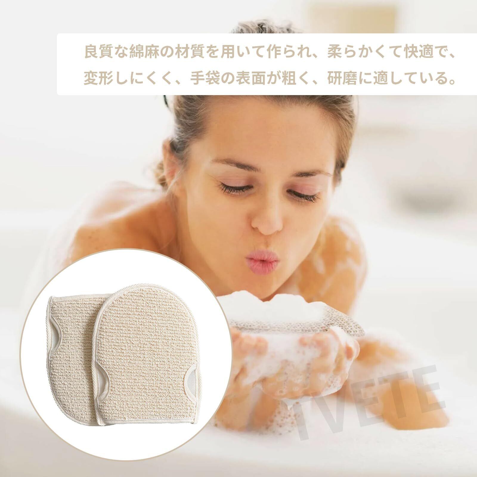【高品質の素材】お風呂手袋は高品質の綿麻材質で作られ、柔らかくて快適、変形しにくい、手袋の表面はざらざらしていて、肌に優しい、スクラブに最適です。