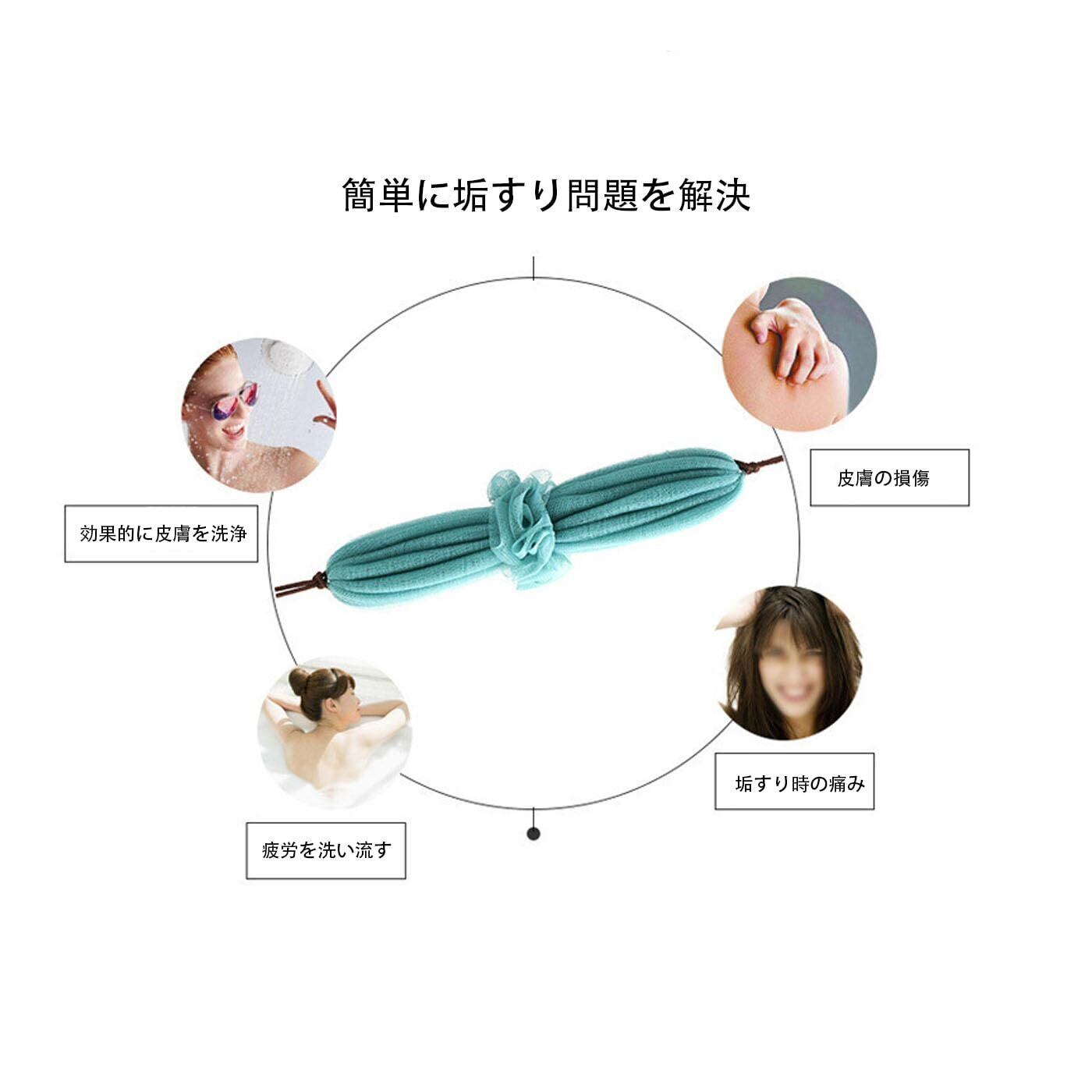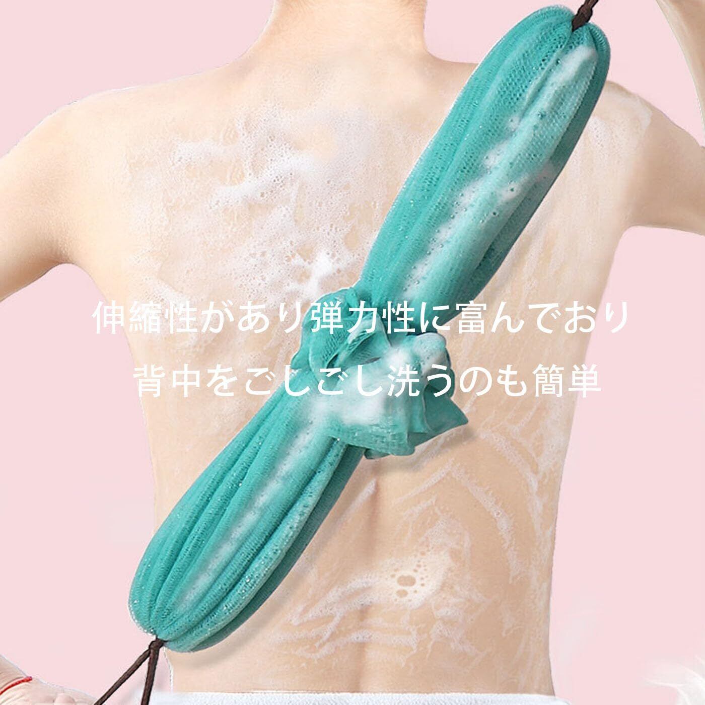 【背中へのフィット感抜群】両端の紐を引くだけで、ネット部分が大きく伸びて、届きにくい背中の部分もしっかりカバーし、力を入れずにすっきり洗えます。