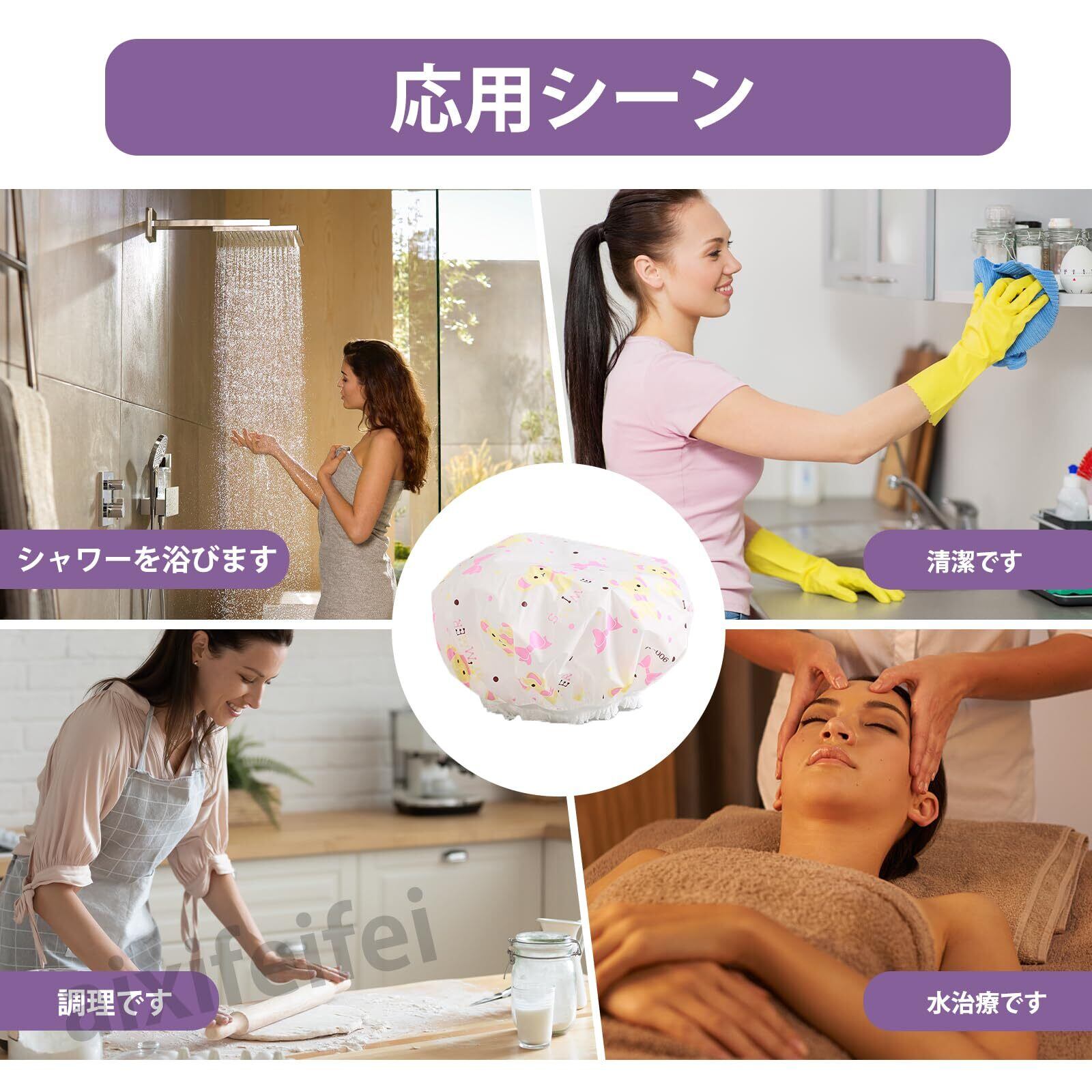 【幅広い用途】:防水シャワーキャップは、お風呂だけでなくヘアケアやスポーツ時にも大活躍! 髪の毛をしっかり保護するだけでなく、繰り返し使えて経済的。ご家庭からサロンまで、こだわりの生活をサポートするマストアイテムです。