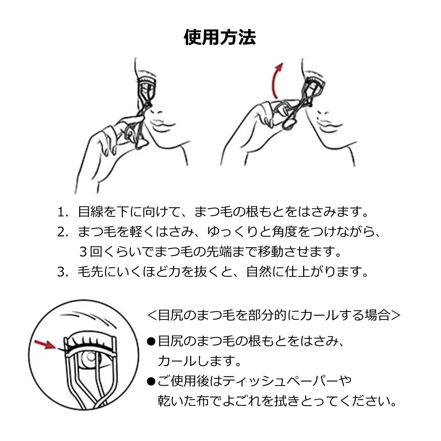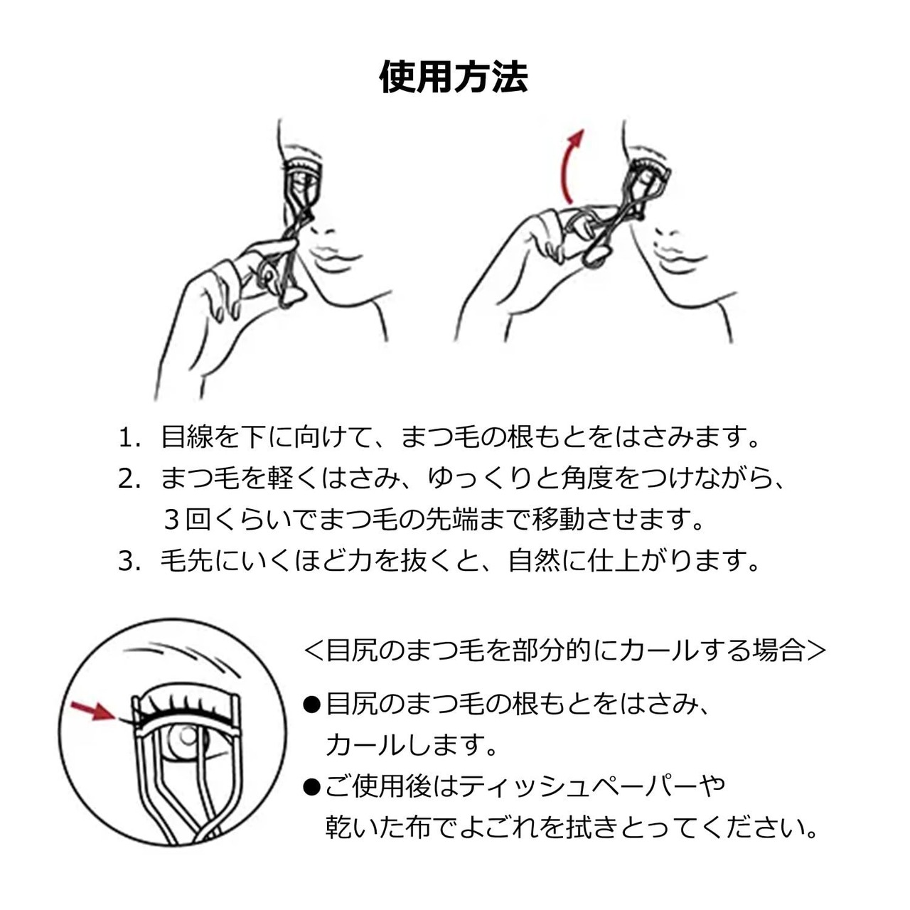 まつげをはさむときは、まぶたをはさんでいないことを確認してからお使いください。 乳幼児の手の届かないところにおいてください。 携帯時などに無理な力がかかるとフレームが曲がることがありますので、ご注意ください。また、フレーム部分を曲げたり、ご使用時に力を入れすぎたりしないでください。ゆがみや変形が生じ、フレームやその他の部位が折れたり破損する恐れがあります。 ご使用前には必ず上のフレームがゴムの中央にセットされているか確認してください。セットされていないと、まつげが切れることがあります。 はさむときは力を強く入れないでください。まつげが切れることがあります。 正しいご使用方法で約1年を目安に新しい本体にお取り替えください。そのままお使いになりますと、思わぬケガや事故などにつながることがありますのでご注意ください。 ゴムが切れたり裂けたりした場合は、新しいゴムに取り替えてください。そのままお使いになりますと、まつげが切れたり抜けたりすることがあります。 ゴムを替えるときは、付属の替えゴムまたは、別売り「資生堂 アイラッシュカーラー替えゴム」をお使いください。