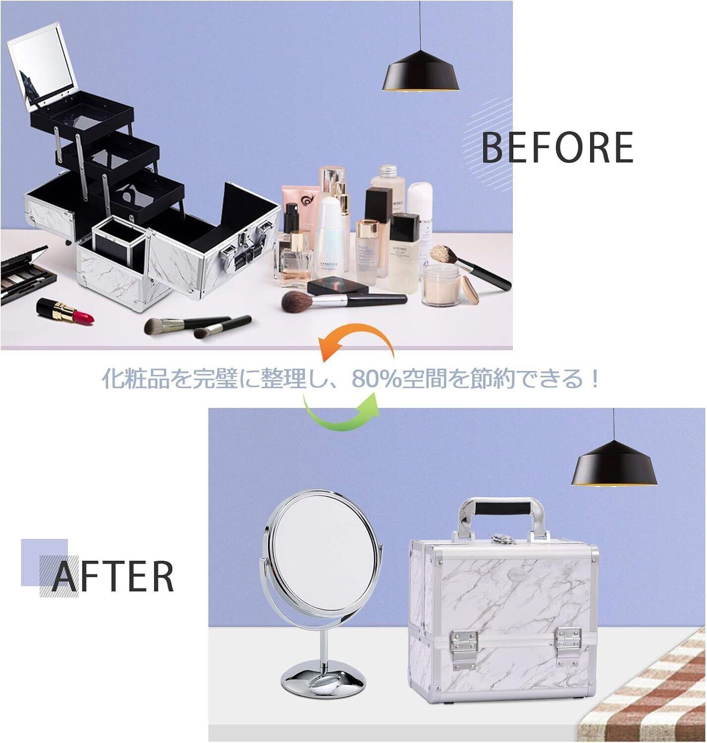 【機能美】おしゃれな大理石柄のメイクボックスは、鏡と鍵付き、ドレッサーより機能性。化粧水・乳液・口紅・ファンデ・アイシャドウ類・メイクブラシ、ネイル用品など、増えていくコスメをきれいに使いやすく収納できます。家庭用はもちろん、旅行と出張時の化粧品収納ボックスとしても快適。