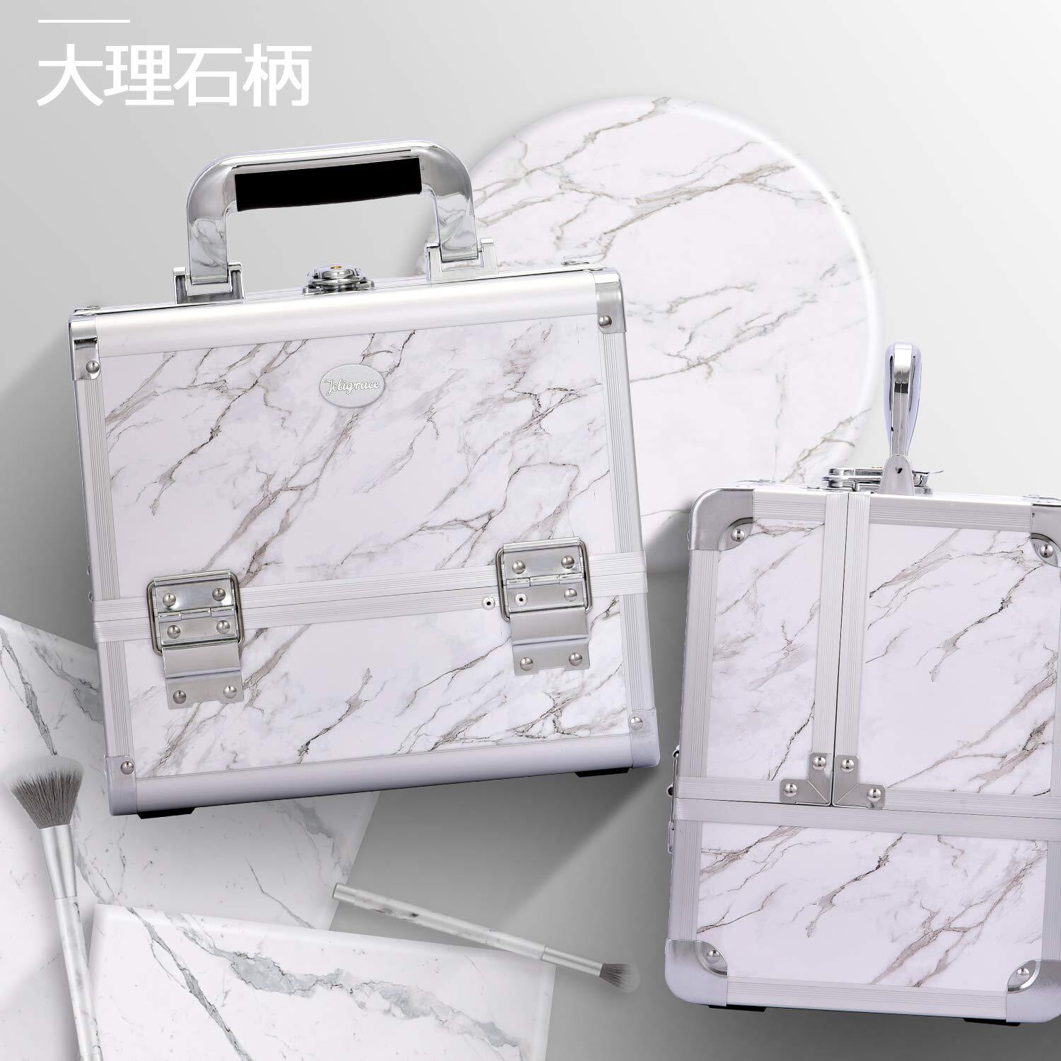 Hapilife コスメ メイク ボックス 鏡付き 大容量 ブラシ立て 3段トレイ 化粧箱 化粧品 収納 メイクブラシケース 母の日のプレゼント (大理石柄-ホワイト)