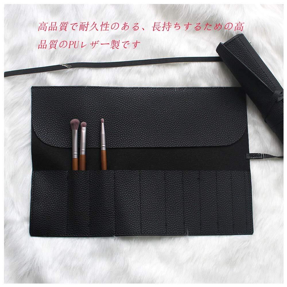 Dekori 化粧ポーチ メイクブラシポーチ 化粧筆ケース 巻き型 PU 大容量 ペンケース コスメポーチ 化粧ブラシポーチ ポータブル メイクアップ ブラシ オーガナイザー メイクアップ ブラシ ホルダー 多機能 旅行用 女性用 携帯便利 10本収納(ブラック)