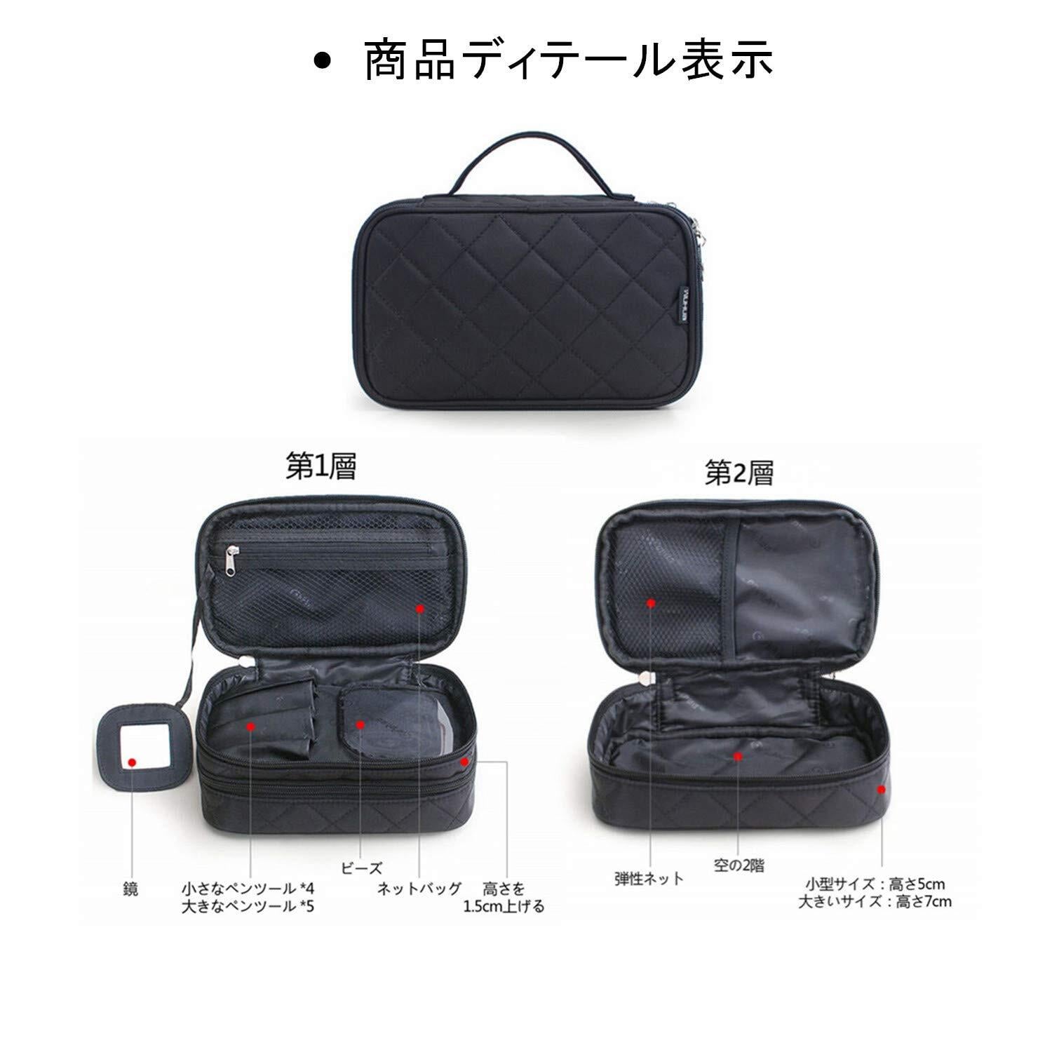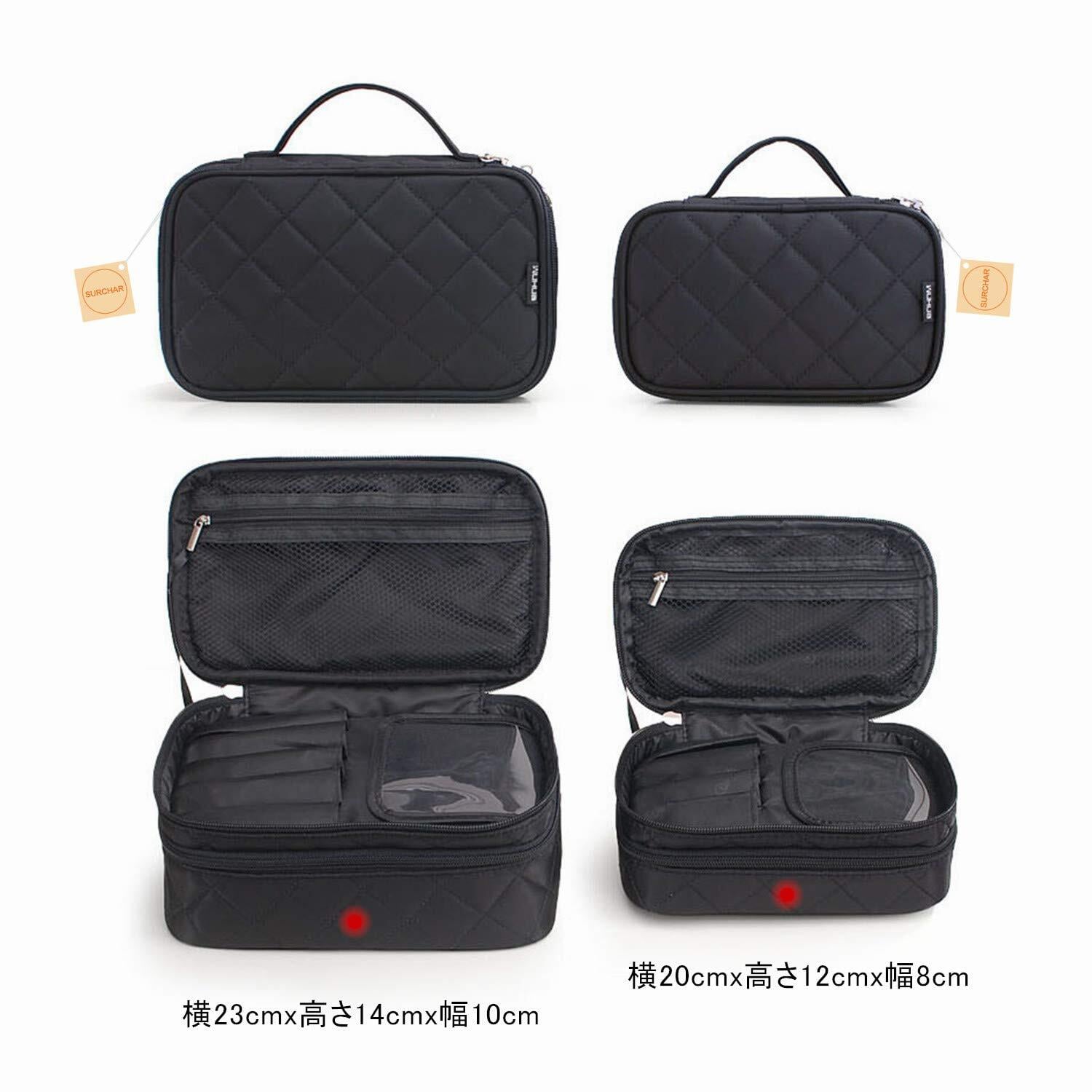 SURCHAR メイクボックス メイクポーチ コスメティックバッグ 旅行ポーチ プロ用 メイクポーチ 化粧ポーチ ダブルレイヤー PC周辺小物整理 トラベルキットパック 小物用収納ポーチ ドレッサーミラー付き 超軽量 多機能 大容量 (小さい,ブラック)