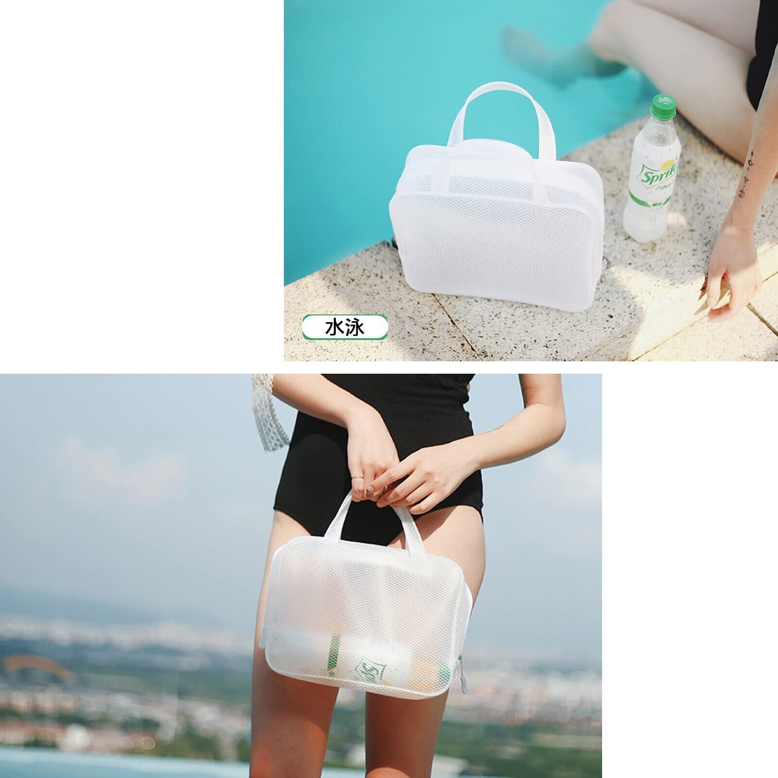 Caizqbry プールバッグ トラベルポーチ 防水 ポーチ ビーチバッグ ビニールバッグ 手提げ ファスナー付 防水 持ち運び 多機能 トラベルセット 着替え収納 ビーチ 水泳 温泉 浴室 砂遊び 出張 旅行 スリッパ 化粧品入れ 半透明かばん お泊まりセット お風呂バック 女の子 男の子 大人・子供兼用 4色選択可(26*19*9cm、ホワイト)