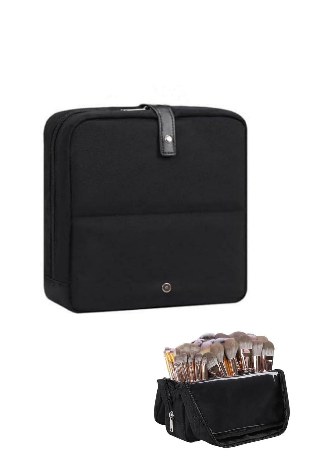 YINKE メイクブラシ収納ポーチ メイクブラシケース プロ 化粧筆入れ 化粧ポーチ 自立 仕切り板調節可能 大容量 旅行 携帯便利 透明カバー 蓋つき 80本以上入れ可能 お手入れしやすい プロ仕様 美容師収納(黒)