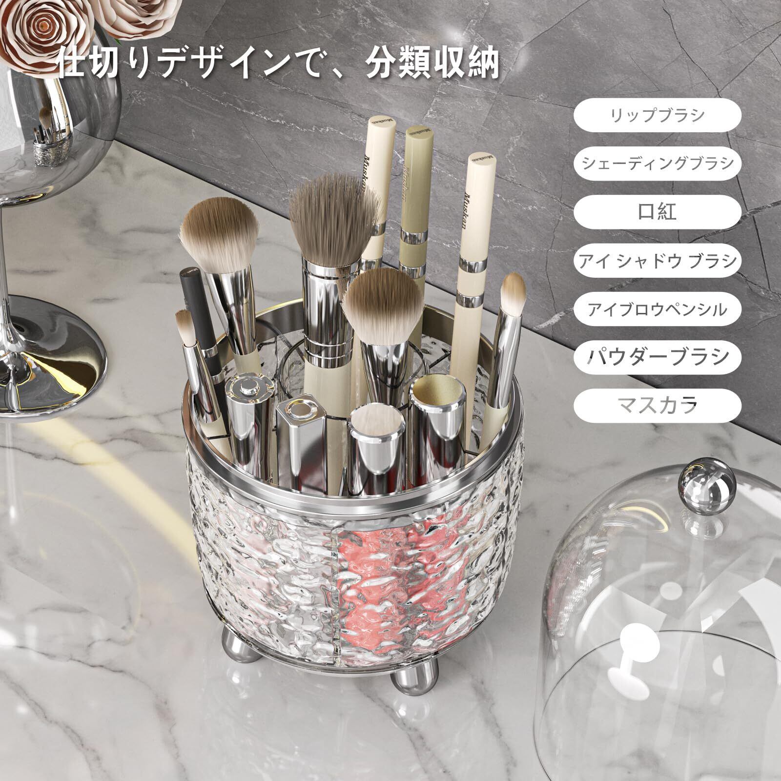 メイクブラシケース 360°回転 コスメ収納 蓋付き 化粧品収納ボックス 防水防塵 メイクブラシ 収納 ホワイト メイクブラシスタンド VOLPONE