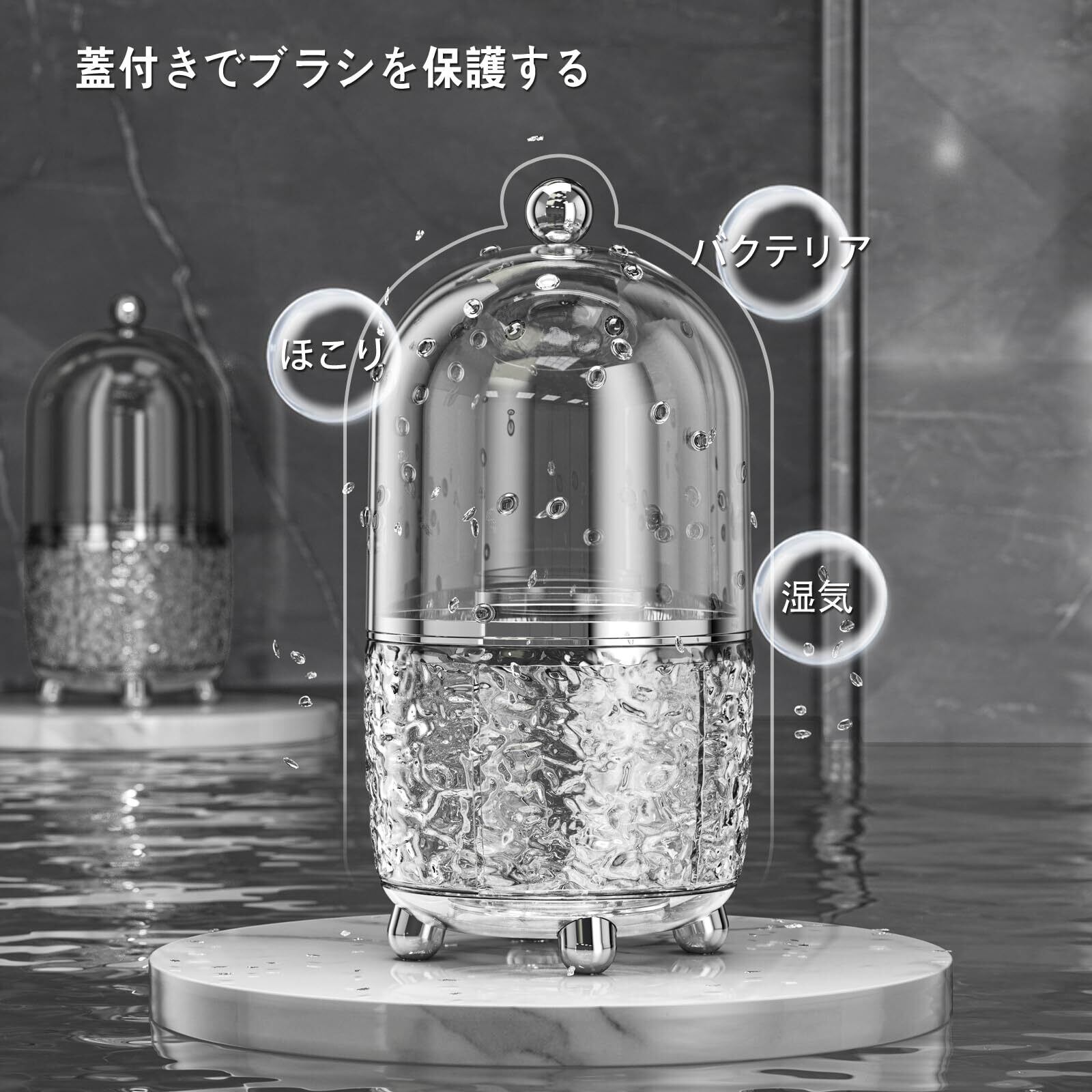 【防塵防湿】メイクブラシ 収納は透過率95%以上の透明蓋があり、上側からメイクブラシを見せるようになりますし、ホコリや湿気からブラシを守れ、浴室に置いても湿気の心配がありません。