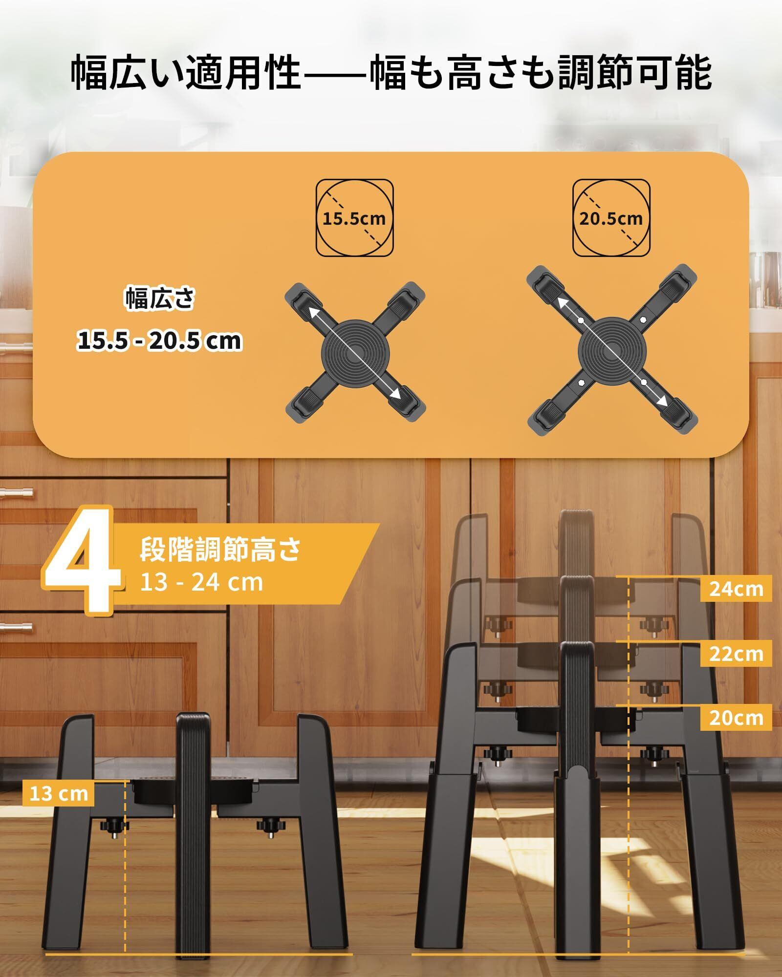 【幅と高さが調節可能&終身適用】今市販しているスタンドのほとんどは、高さか幅しか調節できません。しかし、JUNSPOWフードボウルスタンドは、高さ13~24cm(脚付き)、幅15.5~20.5cmの調節が可能です。つまり、あらゆる形やサイズの犬食器に適しています。 また、簡単に調整できるように設計されています。 JUNSPOWのスタンド1つだけで、あなたの大切なペットの各成長段階に十分付き合えます。