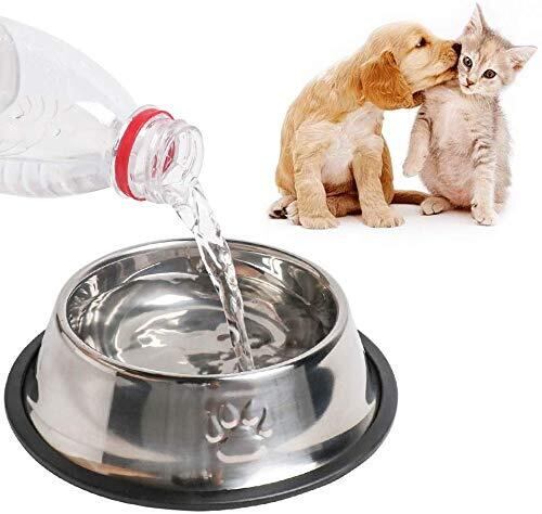 THAIN ペットボウル お皿 犬 猫 ペット用 ステンレス製 こぼれにくい 餌入れ 水入れ 滑り止め 犬食器 猫皿 可愛い肉球柄 2点セット (S)