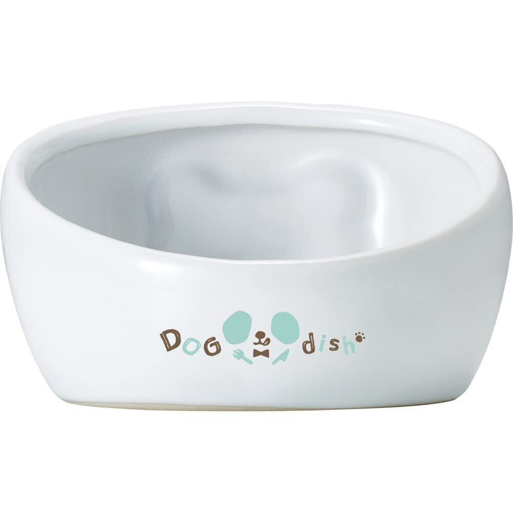 2つの返し構造で食べる時にこぼれにくい形状の犬用陶製食器です。外側の骨型の凹みで食器が持ちやすくなっています。