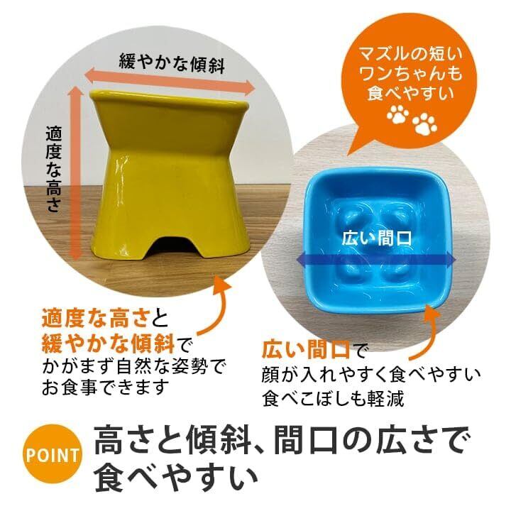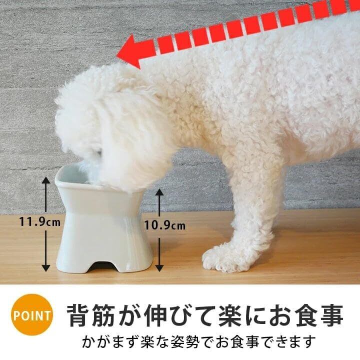 早食い防止 高台傾斜カラーフードボウル 全10色 pet166 | フードボウル 高さがある 早食い防止フードボウル 犬 猫 ペット 食器 陶器 日本製 おしゃれ かわいい 餌入れ 餌皿 水飲み 給水器 皿 犬用 猫用 食器 超小型犬 小型犬 (ホワイト)