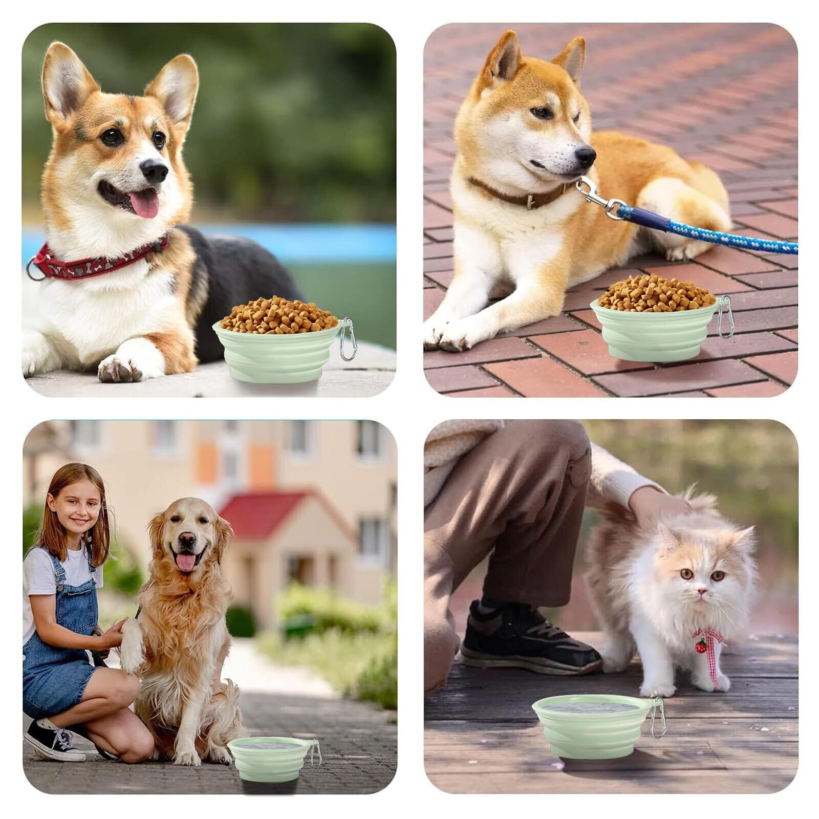 【人気商品】aninako 猫/犬用 給水器 給餌器 【2個】 折りたたみ式 犬猫用ボウル ペット食器 フードボウル 犬 皿 持ち運び 水飲み ペット用品 犬 散歩 水 伸縮 災害 携帯便利 超軽量 登山釦付き(2個ライトブルー)