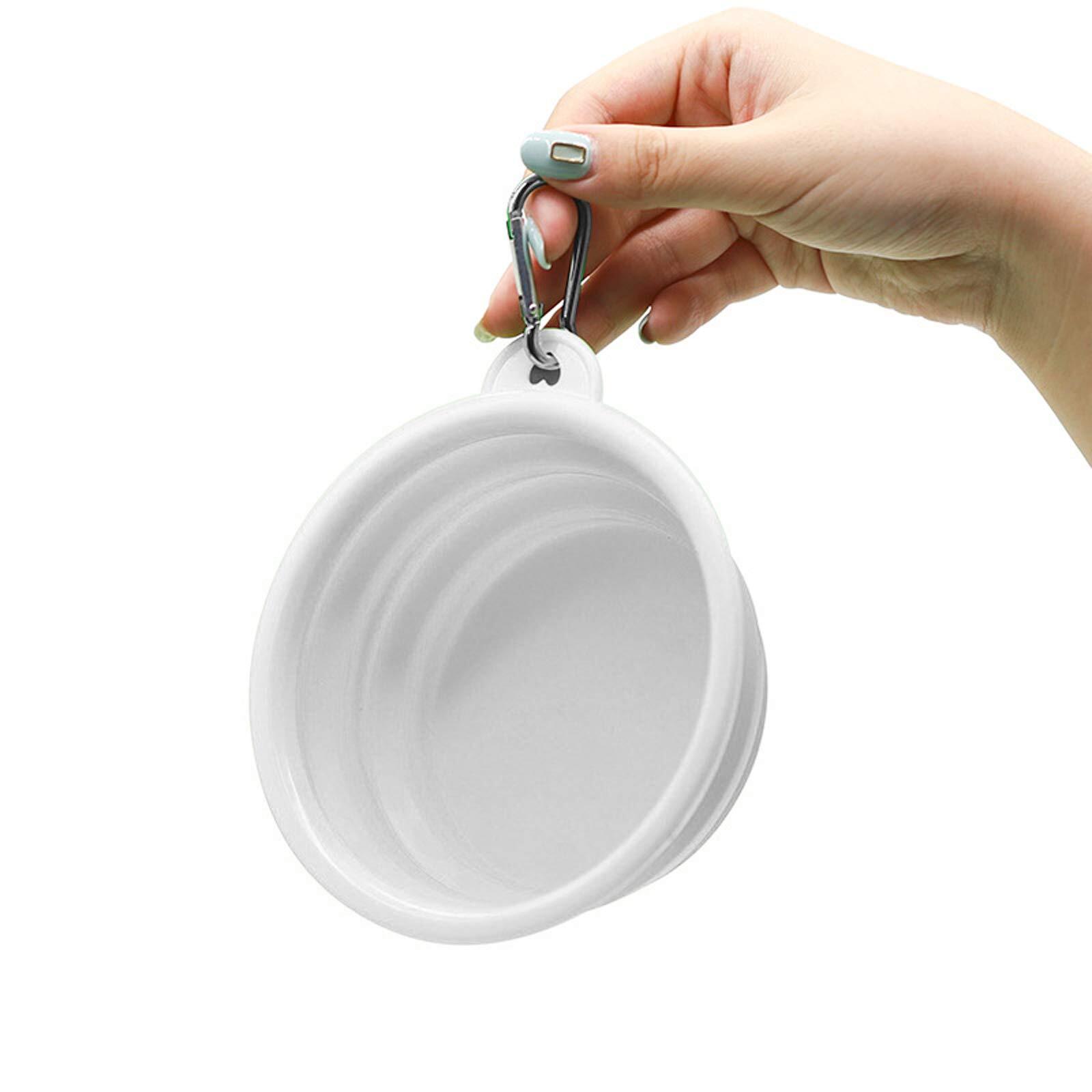 【在庫セール】2個 折りたたみ式 犬猫用ボウル ペット食器 ペット皿 フードボウル 犬用スローフード ペット用品 携帯便利 フック付き シリコン製 超軽量 お出かけ用 水飲み 登山釦付き 伸縮 白
