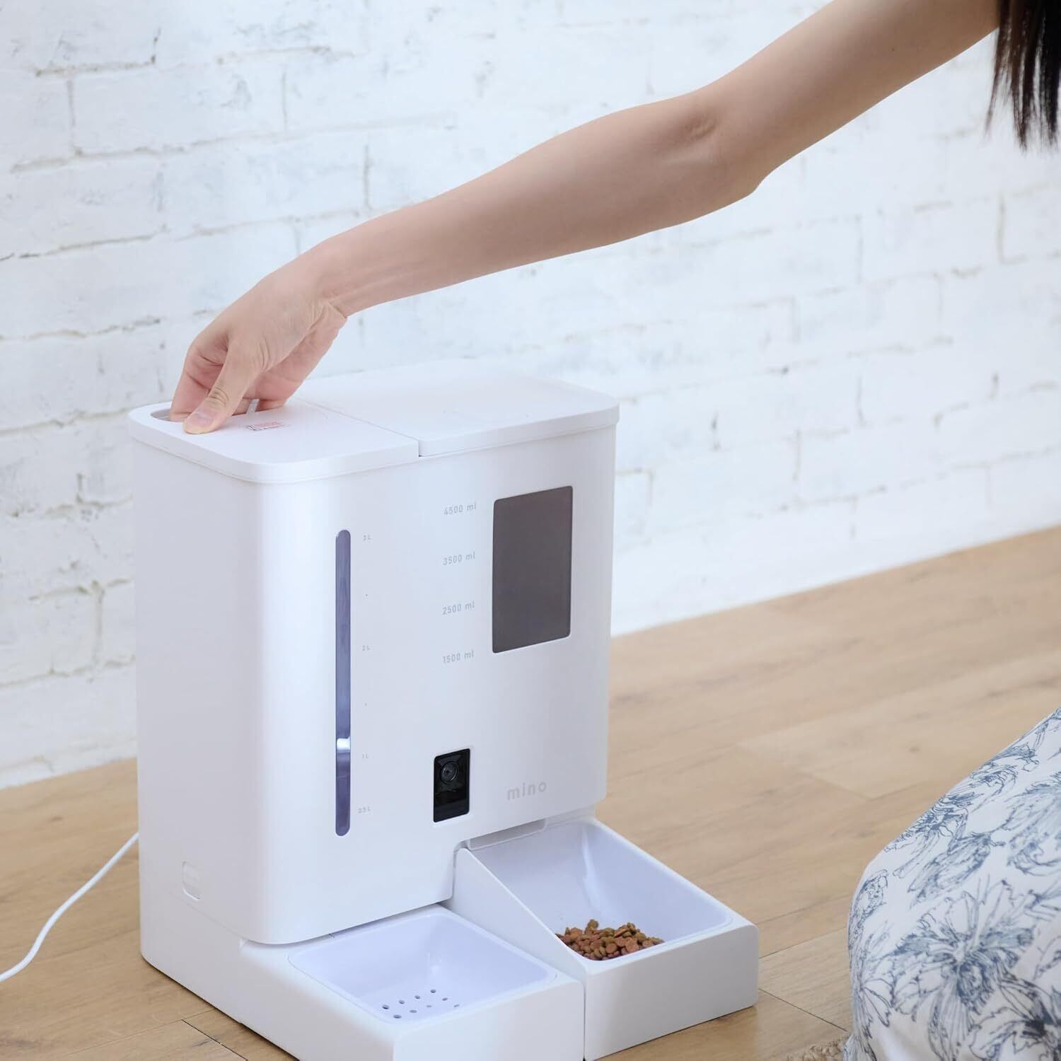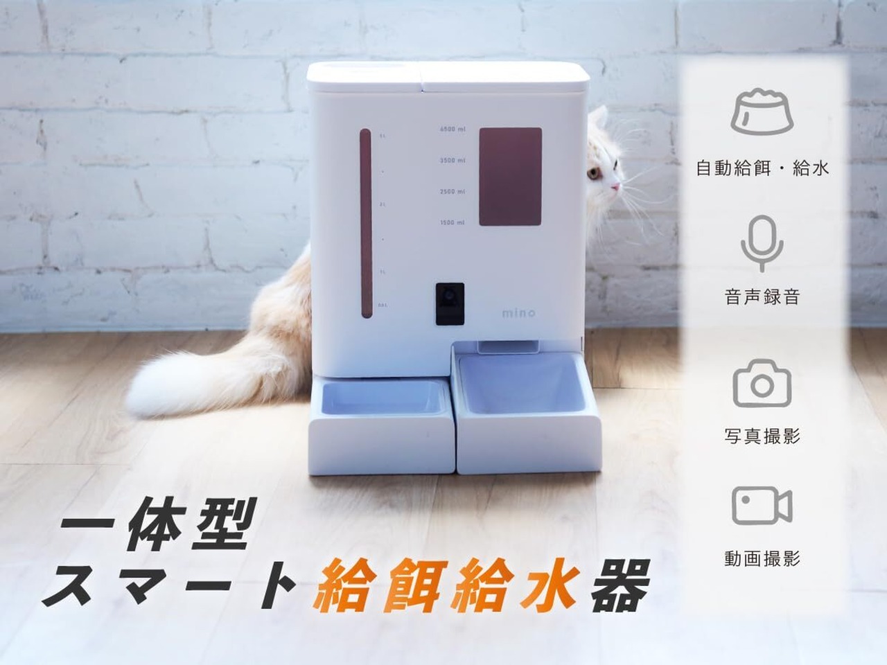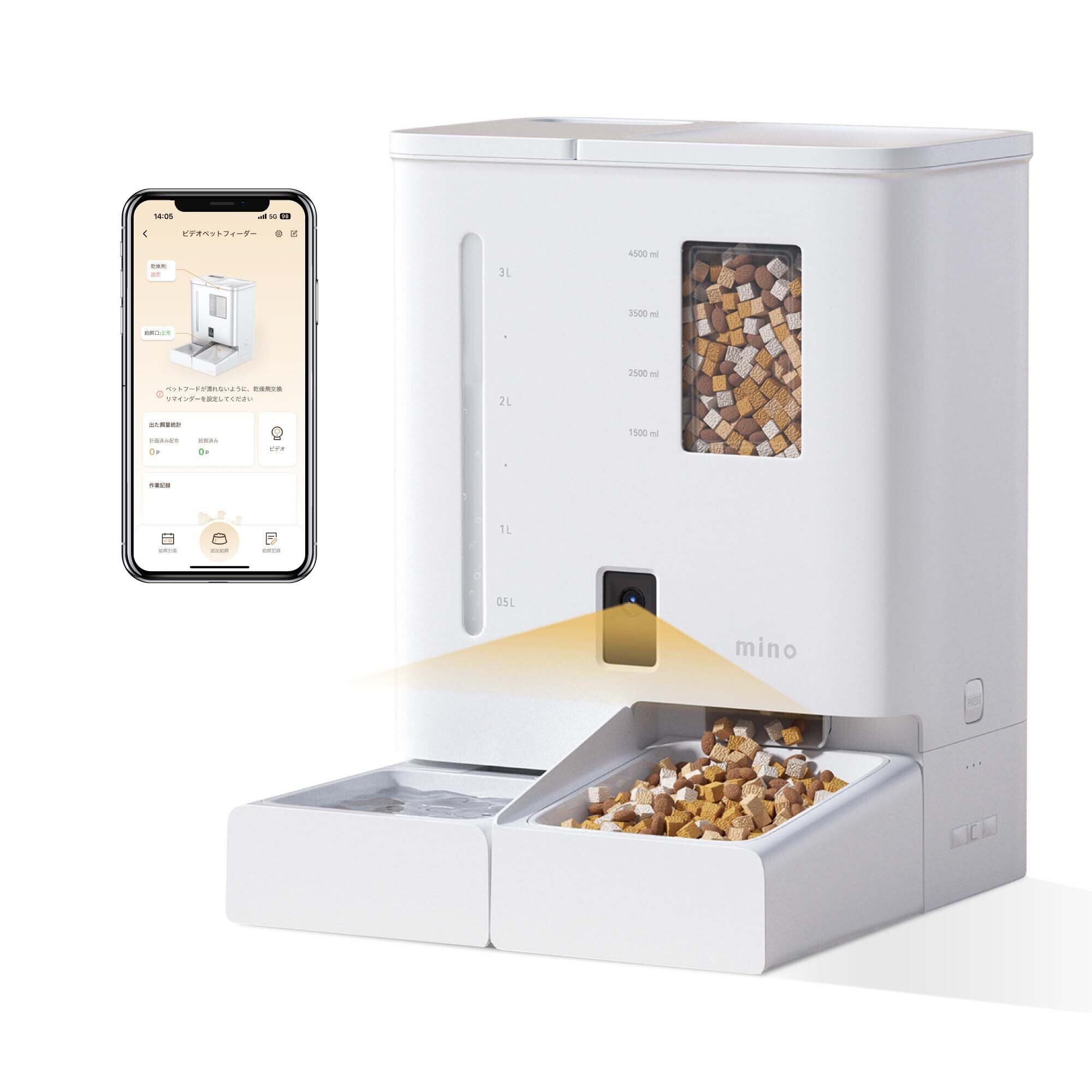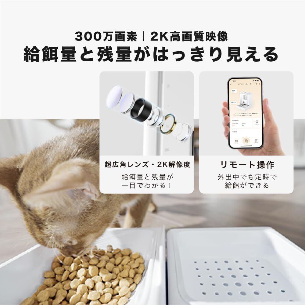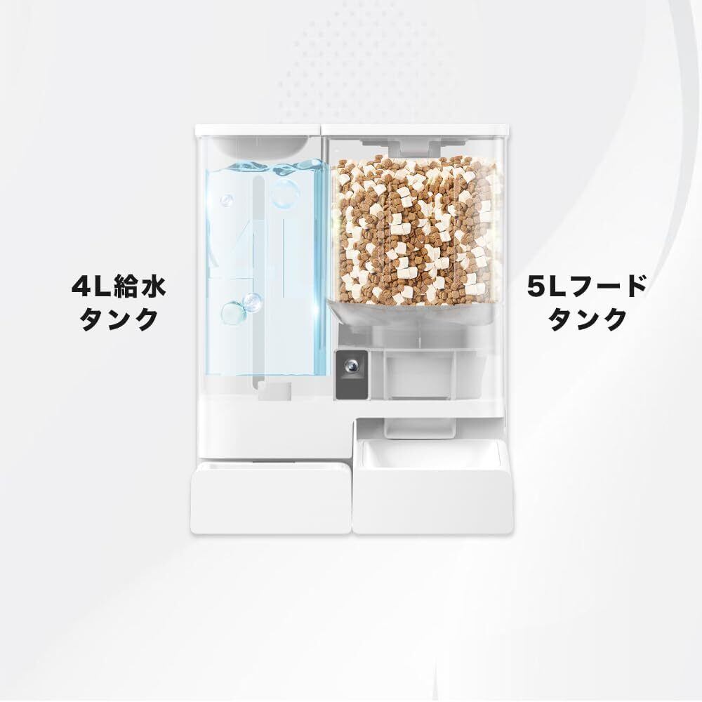 mino 一体型スマート給餌給水器 2K カメラ搭載 犬猫用 音声録音 5Lフードタンク 4L水タンク 2WAY給電 APP制御 5G/2.4Gデュアルモード接続 自動餌やり器 自動水のみ器 自動給餌器 自動給水器 一体器 操作簡単 1日6食 ホワイト