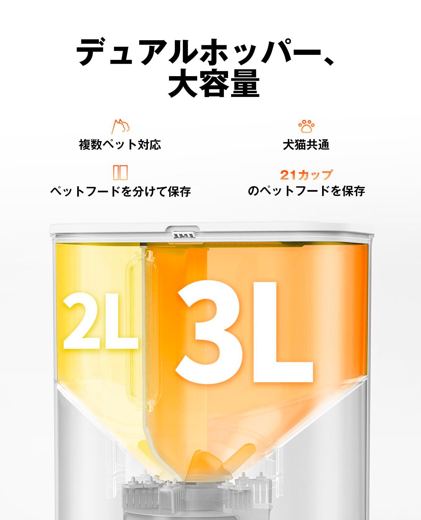 PETKIT 自動給餌器 猫 中小型犬用 タンク二層化 カメラ付き 1080P 暗視機能 双方向会話 透明な窓口 感知センサーを搭載 タイマー式 スマホ管理 2WAY給電 IOS Android対応 日本語対応アプリ (ダブルホッパー カメラ付き)