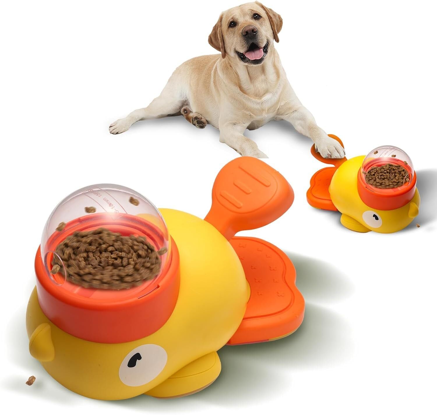 【ワンタッチで愛犬のごはんタイムが楽しく進化!】アヒルの可愛いデザインが愛犬の興味を刺激!ボタンを押すだけでフードが排出され、狩猟本能を満たす仕組み。成功時の達成感でストレス解消&食欲促進。毎日の食事がワクワク遊びに早変わりします。