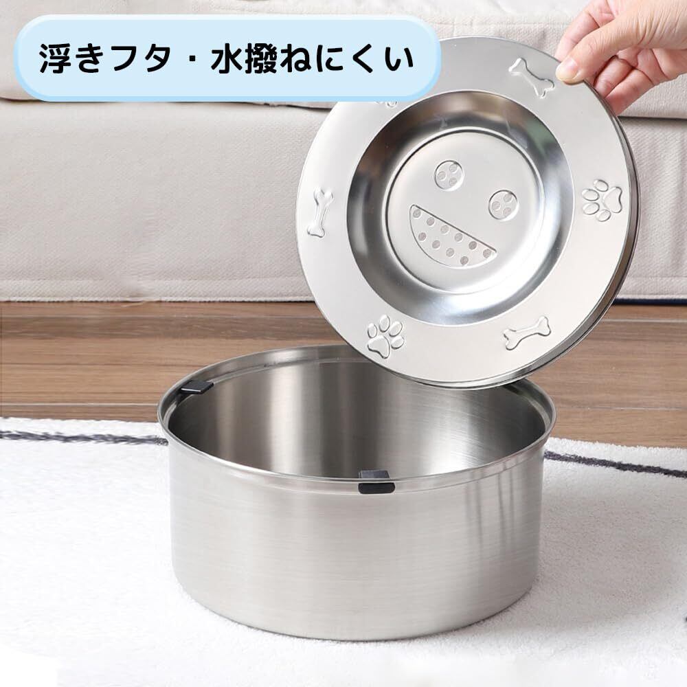 【2024新製品!浮きふた水飲み器】浮きふたが水を覆っているため、ペットちゃんの舌や前足で水を掻き出してもこぼれしにくいデザインになっています。床やフローリングの濡れ減少し、お掃除が楽になります。