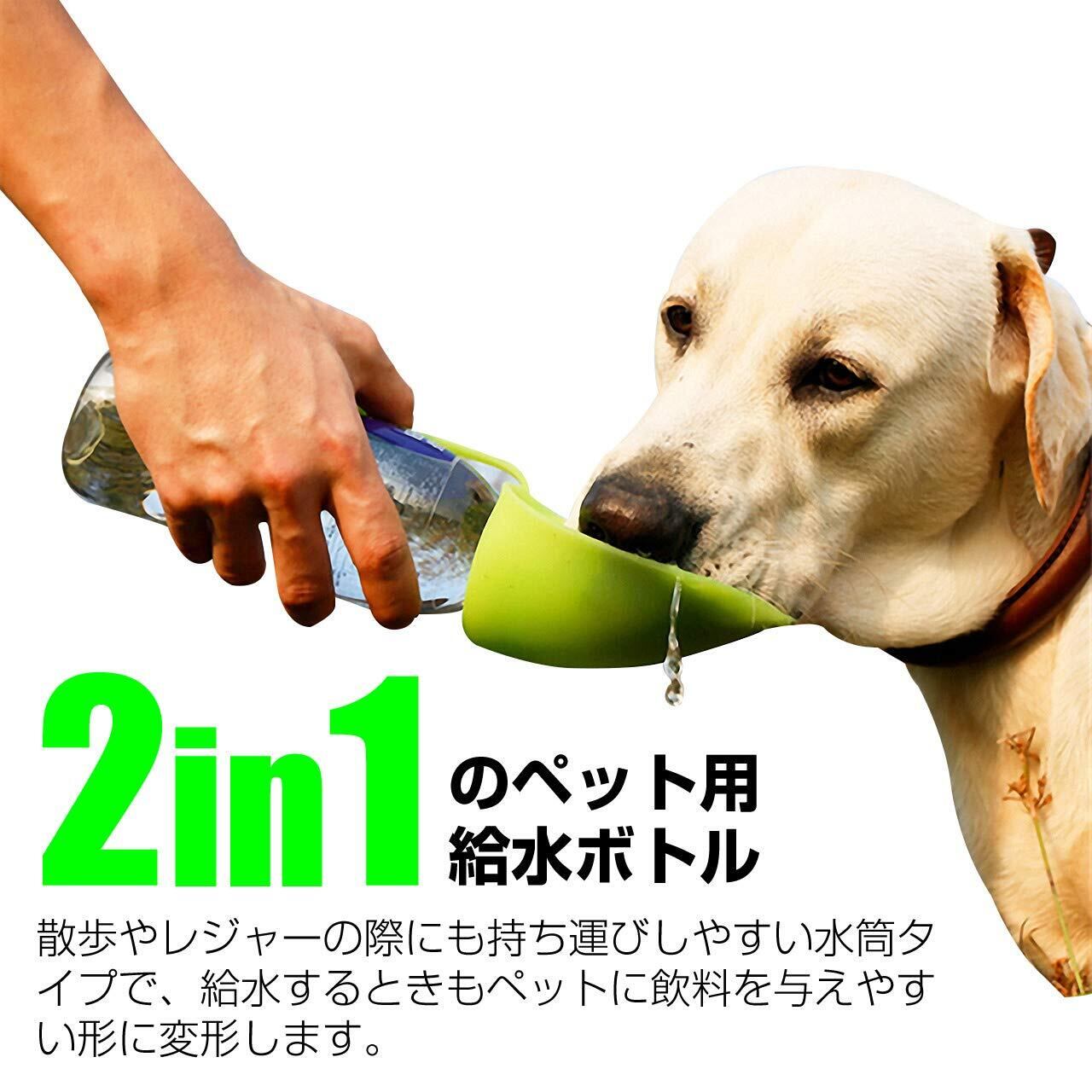 【ペットのことを考えたデザイン】2in1のペット用給水ボトルです。散歩やレジャーの際にも持ち運びしやすい水筒タイプで、給水するときもペットに飲料を与えやすい形に変形します!ペットのことを考えた機能的デザインです。