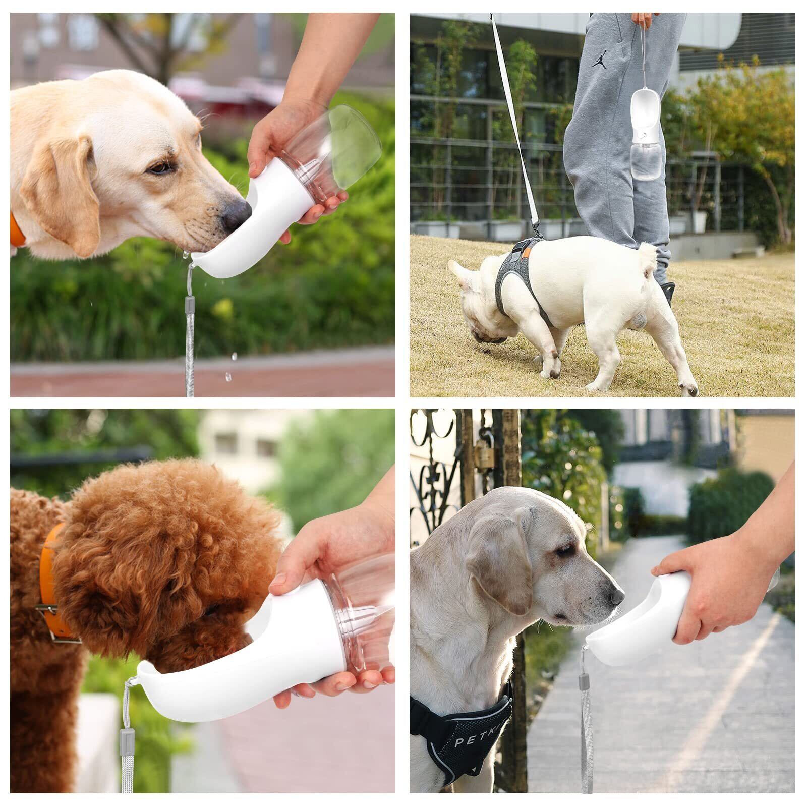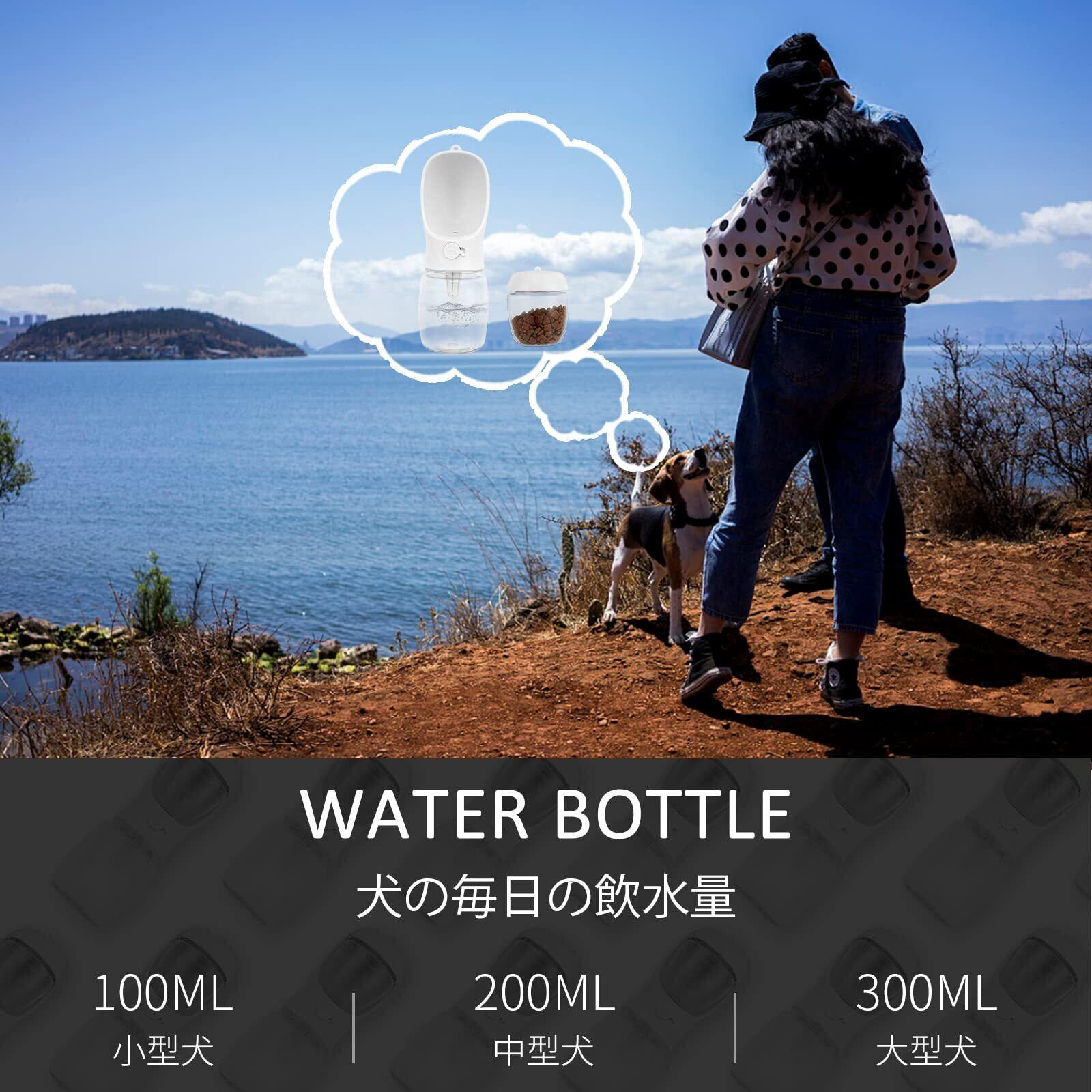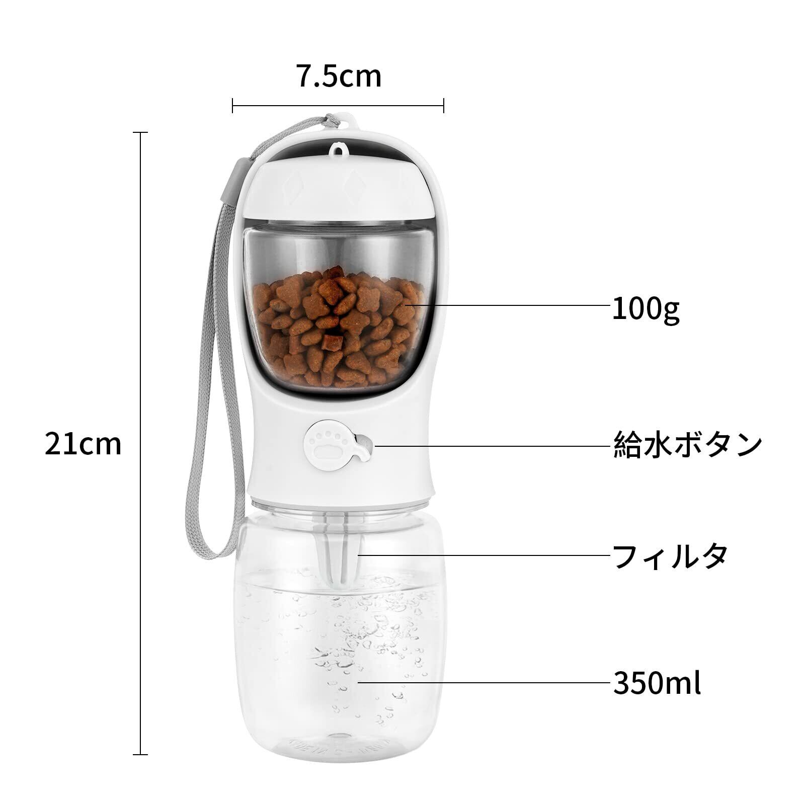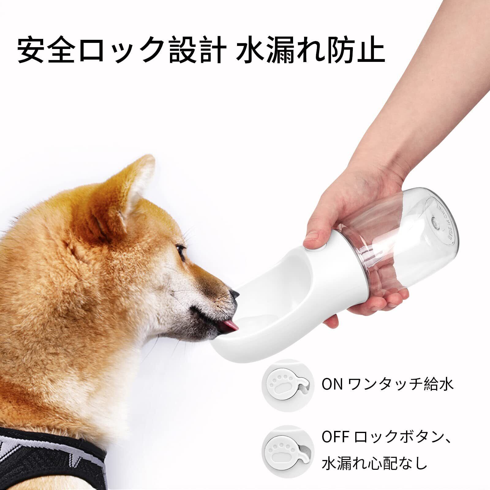 Bateruni ペットウォーターボトル 犬ウォーターボトル 携帯用 水漏れ防止 水槽付き 手軽に水分補給 水飲みボトル 犬 散歩 アウトドア用 水飲み器 (350ml、ホワイト)