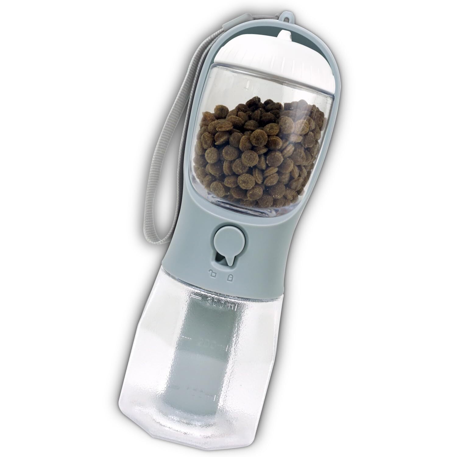 DOGPET 犬 水飲み器 給水ボトル ペットウォーターボトル 散歩用 散歩水飲み 犬水ボトル トリーツケース ロール式袋収納 活性炭フィルター 水300ml フード100g グレー