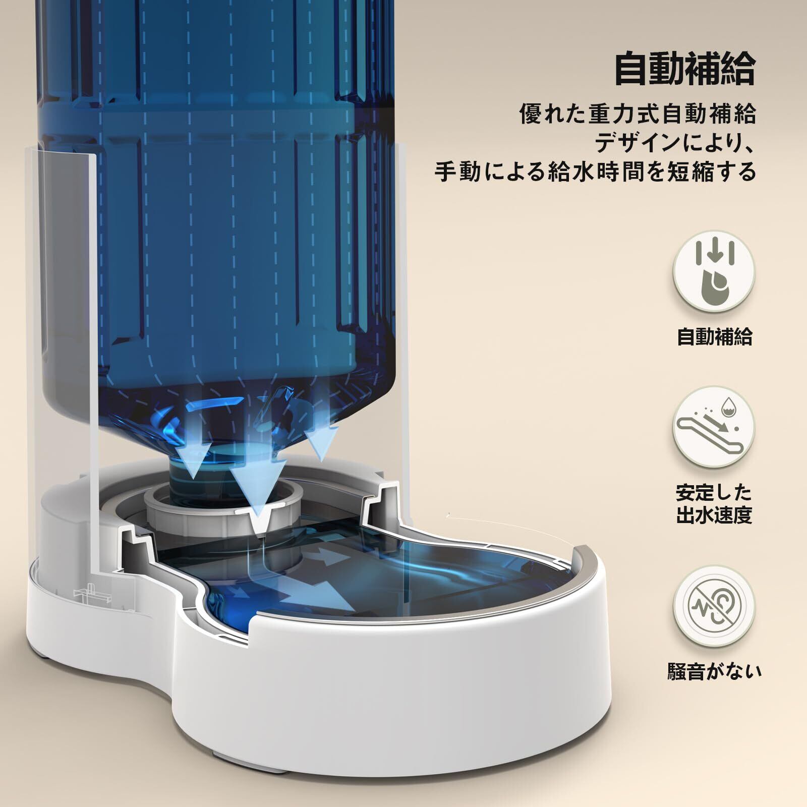 【コンセントなし、安全&静か】JUNSPOWのこのドッグウォーターディスペンサーは重力式自動吐水装置を採用し、コンセントなし、超低デシベルの無音吐水、あなたとあなたのペットの睡眠を邪魔しません、あなたとあなたの最愛のペットのための最良の選択です。