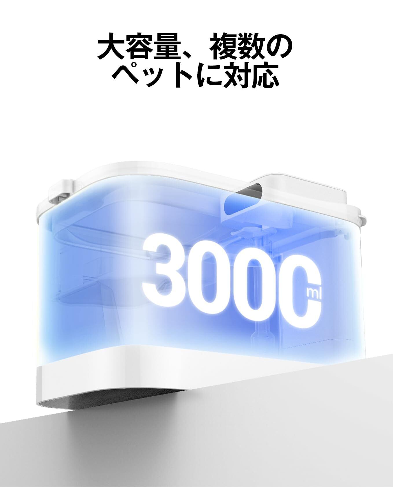 【3L大容量】3L容量のペット給水器で頻繁に補水する必要がなく、複数のペットを飼う家庭向きです。満水にした状態で、猫2匹又は犬1匹が1週間水を飲むことができます。