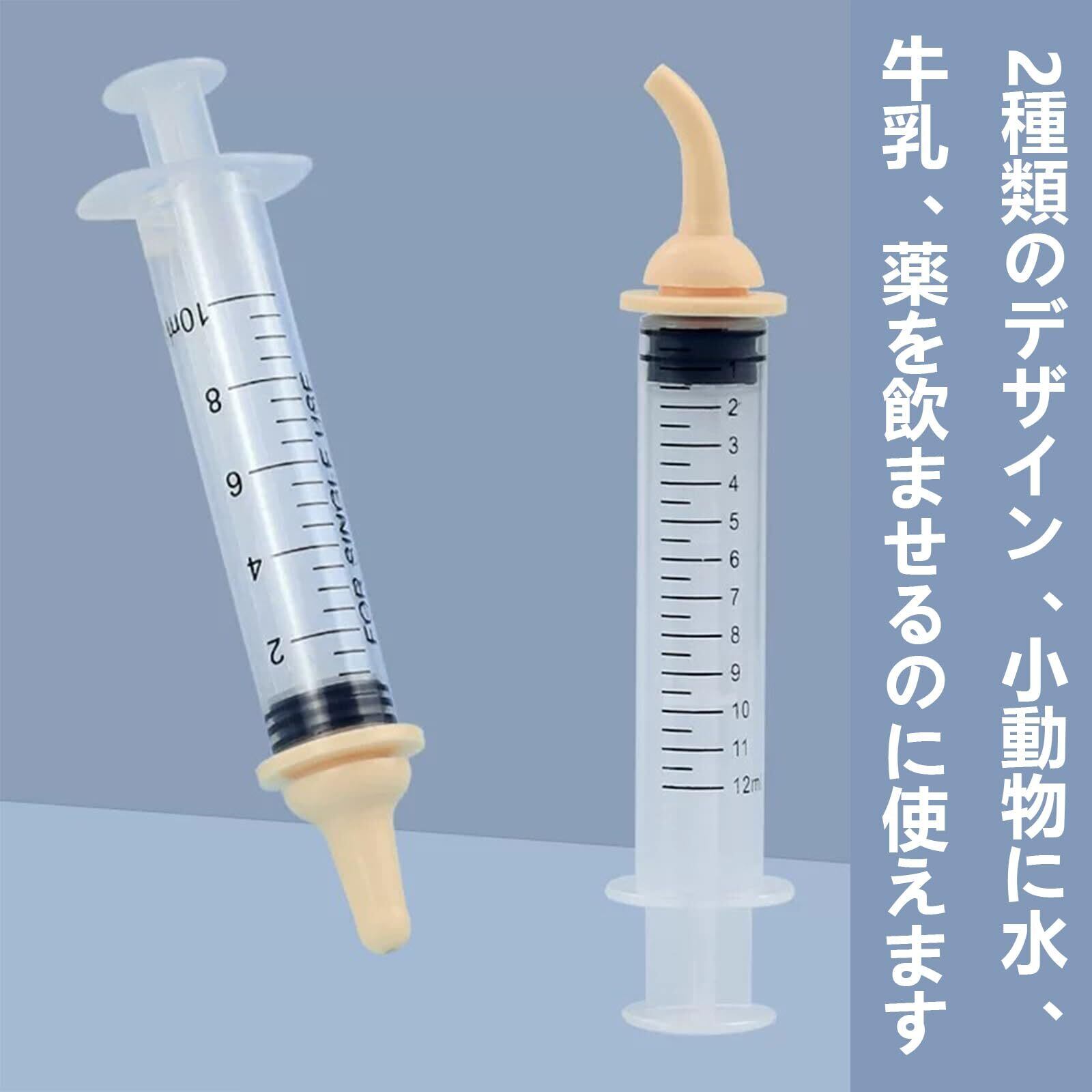 【商品のサイズ】ペット注射器:長い12cm、容量:10 ml、湾曲した先端の シリンジ:長い13cm、容量:12 ml。 目盛り付きで、与える薬の量を簡単に把握できます。 おしゃぶりはあらかじめ穴が開いています、細くて柔軟なおしゃぶり吸いやすい