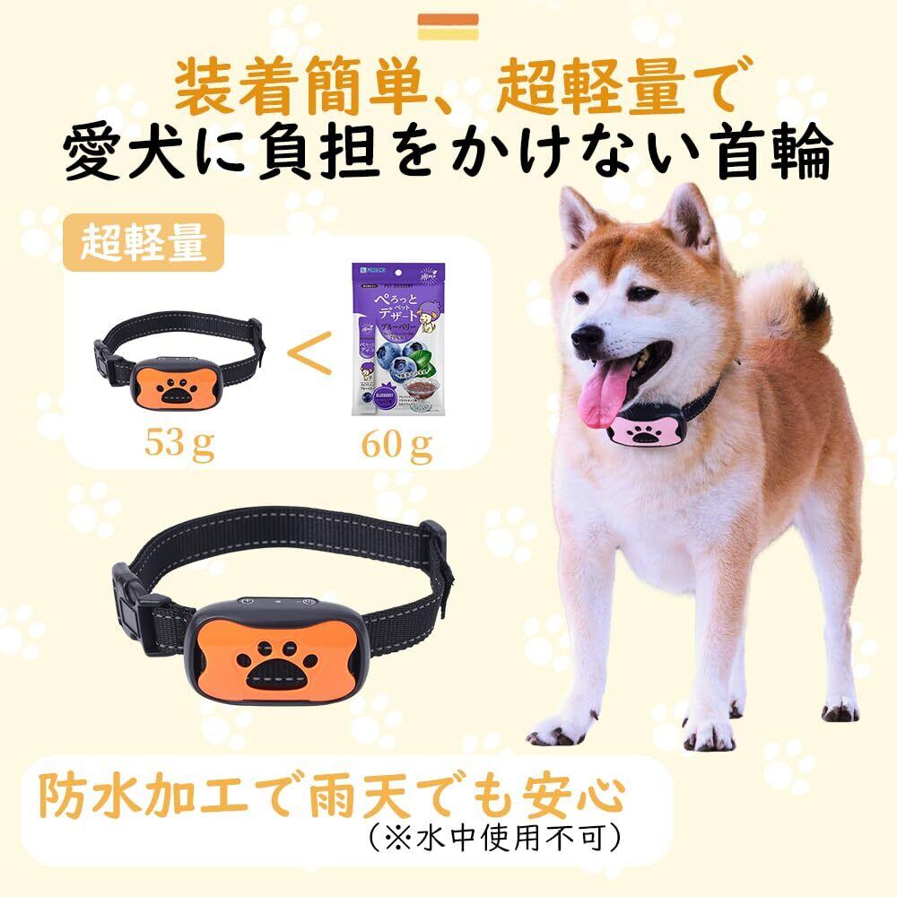 TTFP 無駄吠え防止首輪 小中型犬専用首輪 53g超軽量 電流ショック不使用 全自動 7段階ピーの音&振動 防水 しつけグッズ 日本語説明書付き(肉球 オレンジ)