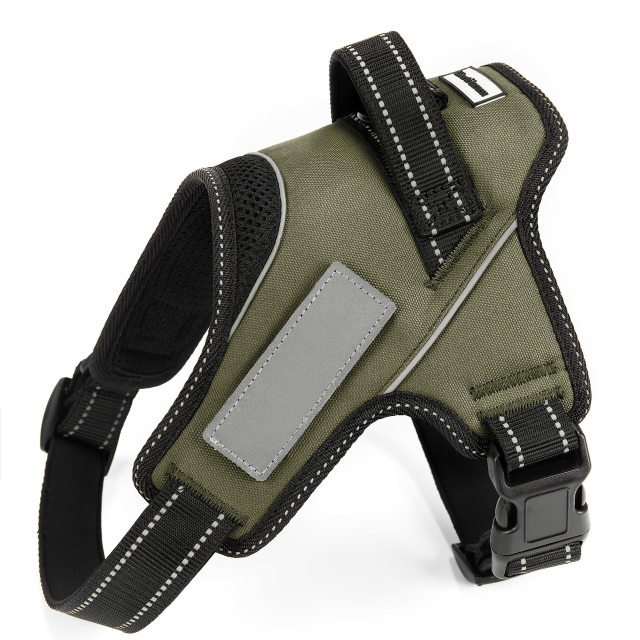 【ドッグトレーナーも推薦!】Liberte harness 犬 ハーネス 喉に優しい ネームプレート ドッグハーネス (Mサイズ, ダークグリーン)