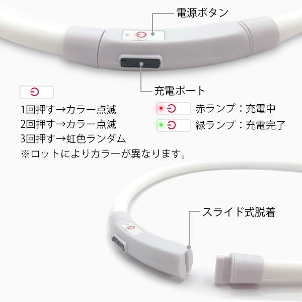 夜間や早朝の散歩におすすめの光る首輪! USB充電式で経済的! 【商品仕様】 カラー レインボー