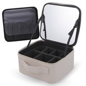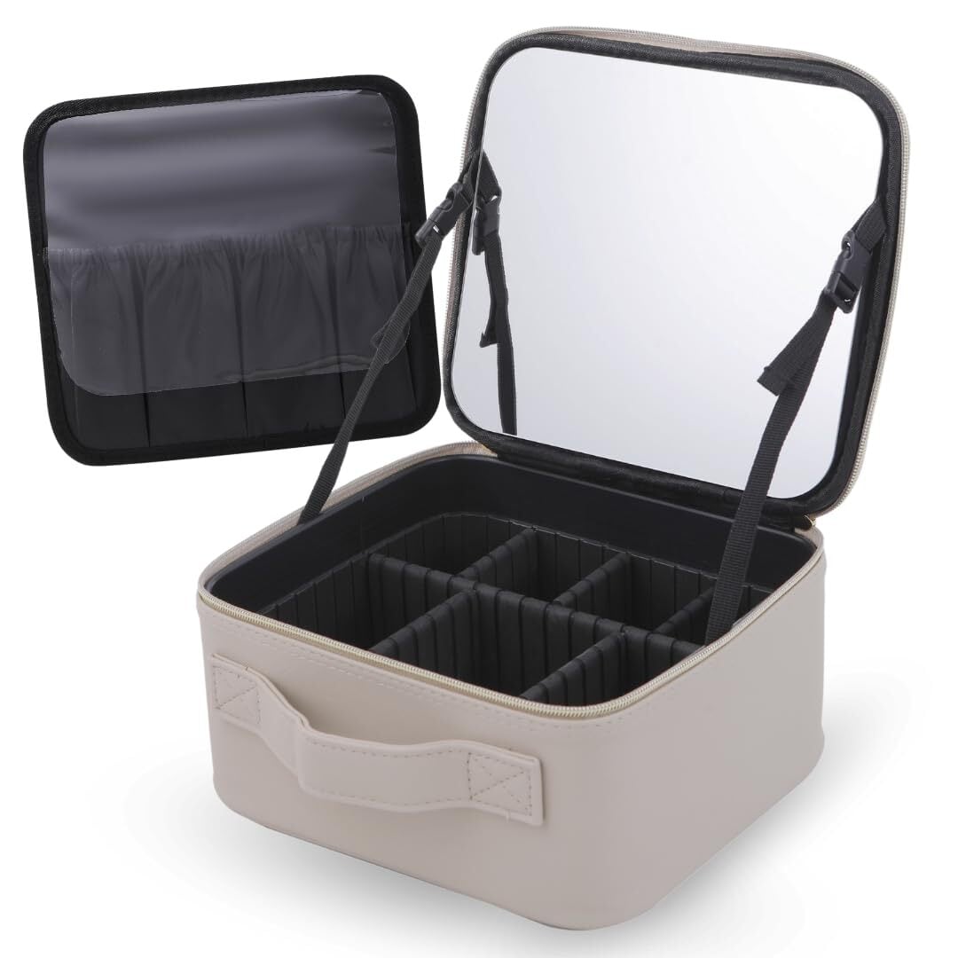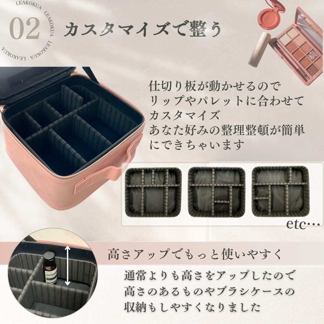 LEAKOKUA(レアコクア) メイクボックス 【高さアップ×鏡付き】 メイクポーチ 大容量 コスメボックス 化粧ポーチ コスメポーチ プロ用 収納ケース 持ち運び 小物入れ (02.beige)