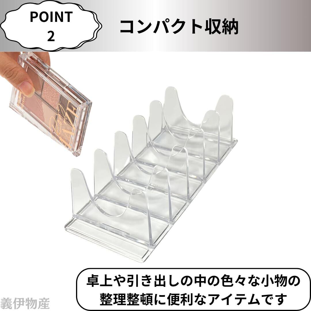 【立てて収納】アイシャドウやチークを立てて収納できその他のメイクアップアクセサリーも収納できます。 【コンパクト収納】コスメをコンパクトに整理でき、卓上や引き出しの中の色々な小物の整理整頓に便利なアイテムです。 【U字型の仕切り】U字型の仕切りで収納したアイテムが取り出しやすい設計になっています。