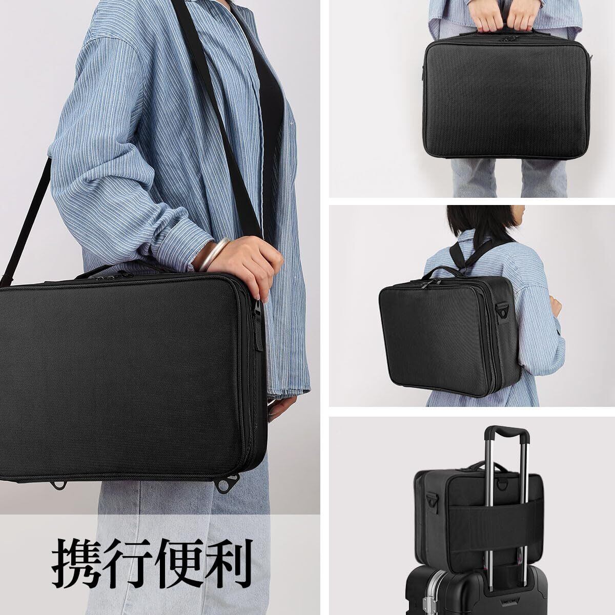 【数量限定】メイクボックス Luxspire コスメボックス メイクブラシバッグ EVA化粧ポーチ コスメポーチ メイクポーチ3段式 サイズ:34.5*23.5*12CM 肩掛けベルト付き プロ用 仕切り 持ち運び 防塵 收納抜群 置き方調整可能 通勤・出張・旅行用 機能的收納 大容量 衝撃吸収 化粧品収納 収納ケース クリスマスギフト プレゼント ブラック