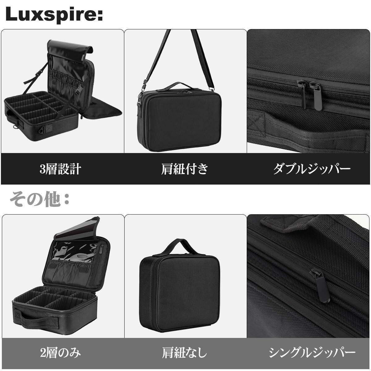 メイクボックス Luxspire コスメボックス メイクブラシバッグ EVA化粧ポーチ コスメポーチ メイクポーチ3段式 サイズ:34.5*23.5*12CM 肩掛けベルト付き プロ用 仕切り 持ち運び 防塵 收納抜群 置き方調整可能 通勤・出張・旅行用 機能的收納 大容量 衝撃吸収 化粧品収納 収納ケース クリスマスギフト プレゼント ブラック