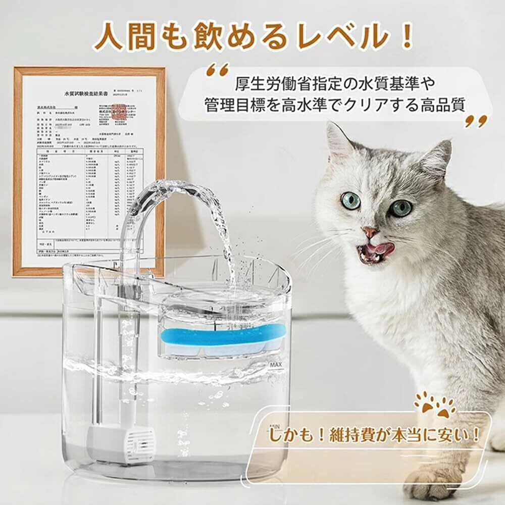 「超静音&省エネ」:この猫用水飲み器は、最新世代の超静音・振動低減設計の水中ポンプを採用しており、作動音が非常に静かで、水の音がほとんどしないため、夜の睡眠を妨げません。また、1ヶ月あたりの消費電力は1.5KWと低く、電気代は約42円です。耐久性にも優れており、10,000時間以上の連続使用が可能で、適切に使用すれば2年以上持ちます。