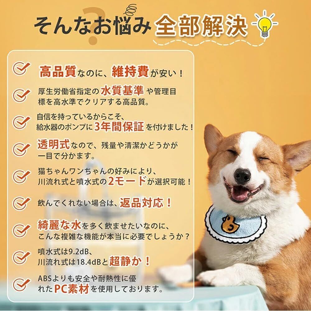 「&安心」飲水器の設計は水位が一目瞭然で、2Lタンク付きながら、交換フィルター1セット付きでショッピング体験が向上するに専念しております。また、部品不足、製品の破損、その他の問題が発生した場合は、いつでものカスタマーサポートまでご連絡ください。