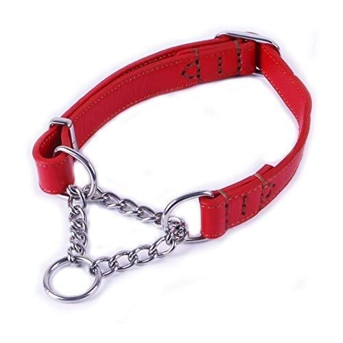 Beanspet 本革製 ハーフチョーク 犬用カラー 調整可能 しつけ用 首輪 小型犬 中型犬 大型犬 3サイズ展開(S/M/L)3色展開 (レッド, M)