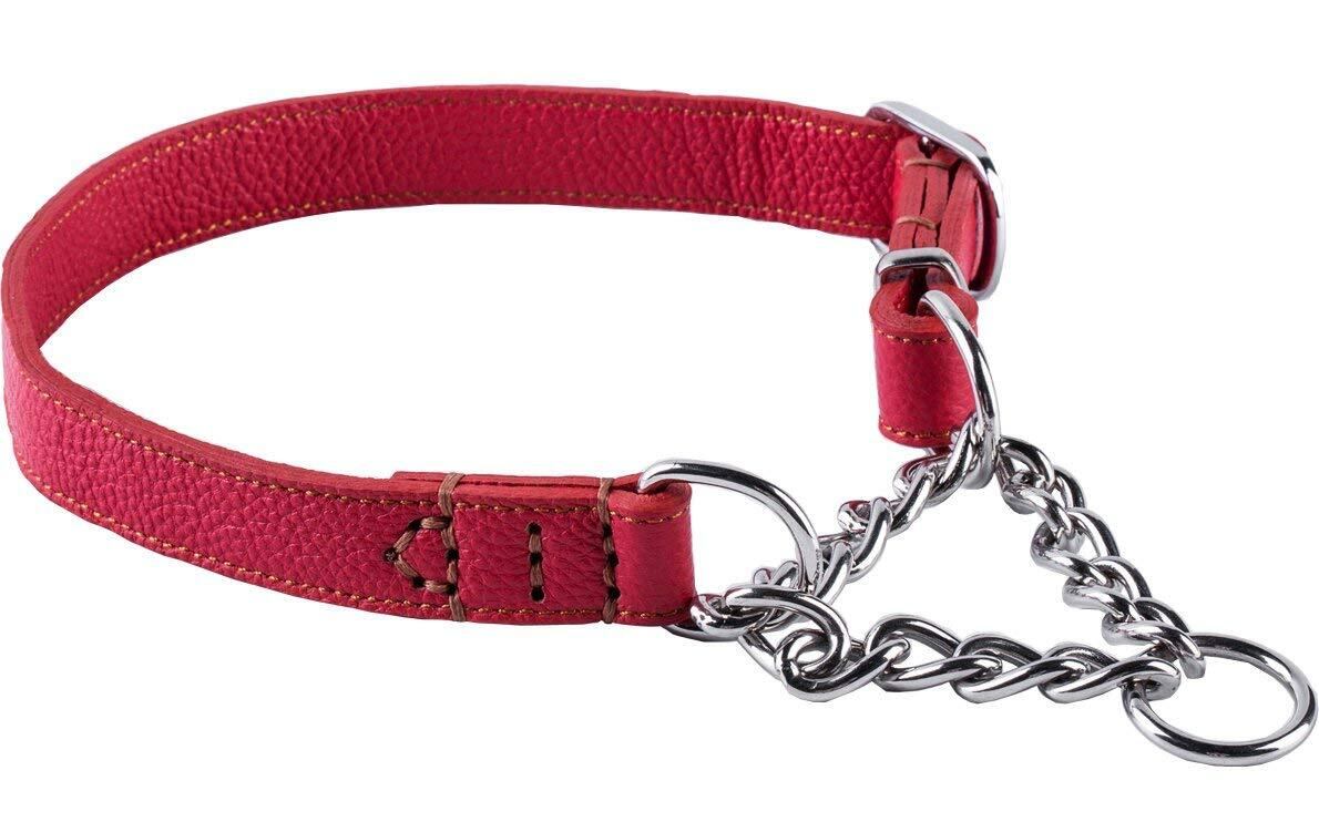 【特価セール】Beanspet 本革製 ハーフチョーク 犬用カラー 調整可能 しつけ用 首輪 小型犬 中型犬 大型犬 3サイズ展開(S/M/L)3色展開 (レッド, M)