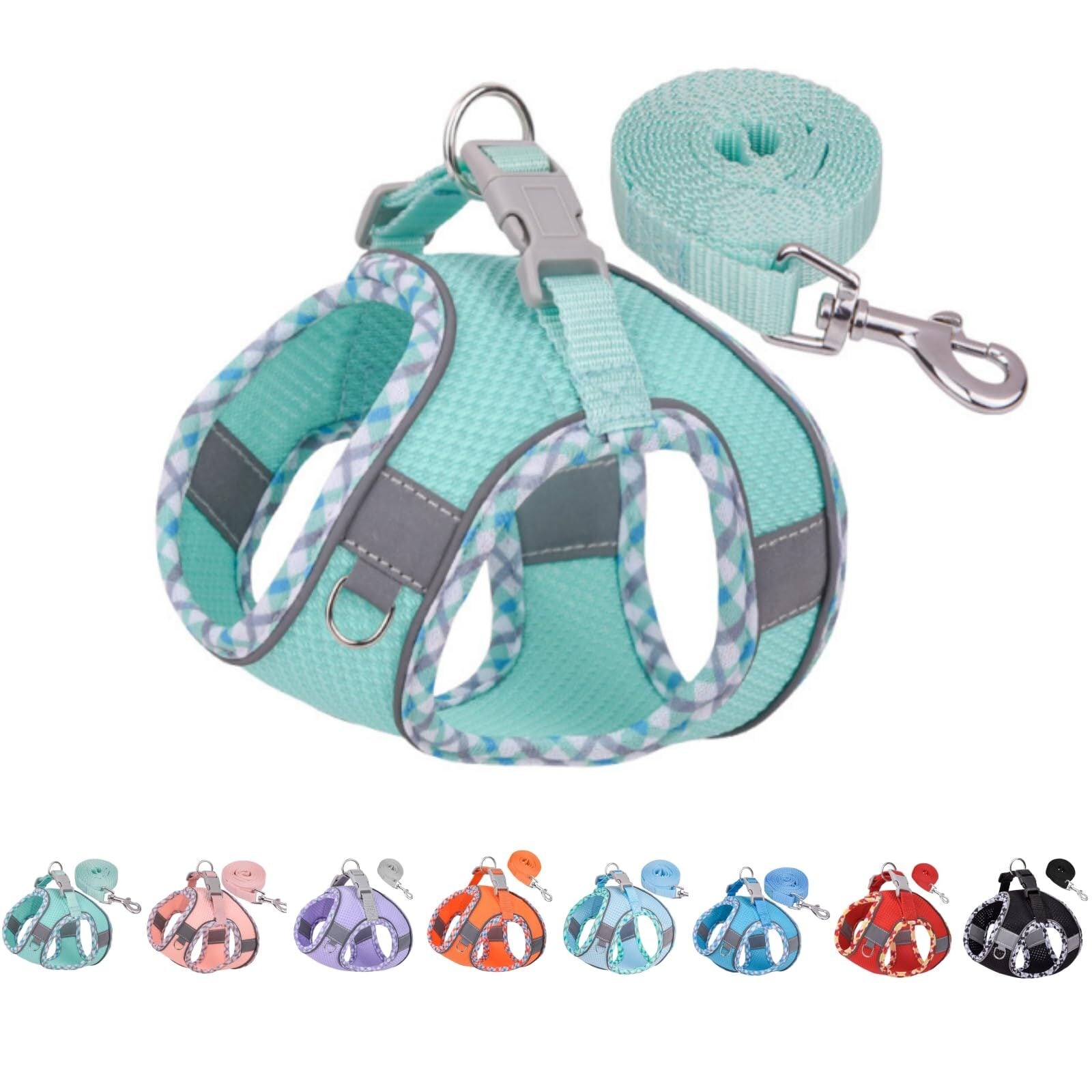 犬 ハーネス リードセット 負担が少ない 軽量 通気 犬用ハーネス 小型犬 猫ハーネス首輪 胴輪 簡単着脱 抜けない 犬はーねす小型 3MTM反射素材付属 マジックテープ 超小型犬 中型犬 調節可能 ペット用品 引っ張り防止 着脱簡単 老犬 歩行補助 散歩用 夏用 人気 メッシュ おしゃれ チェック柄 (XXS, グリーン)