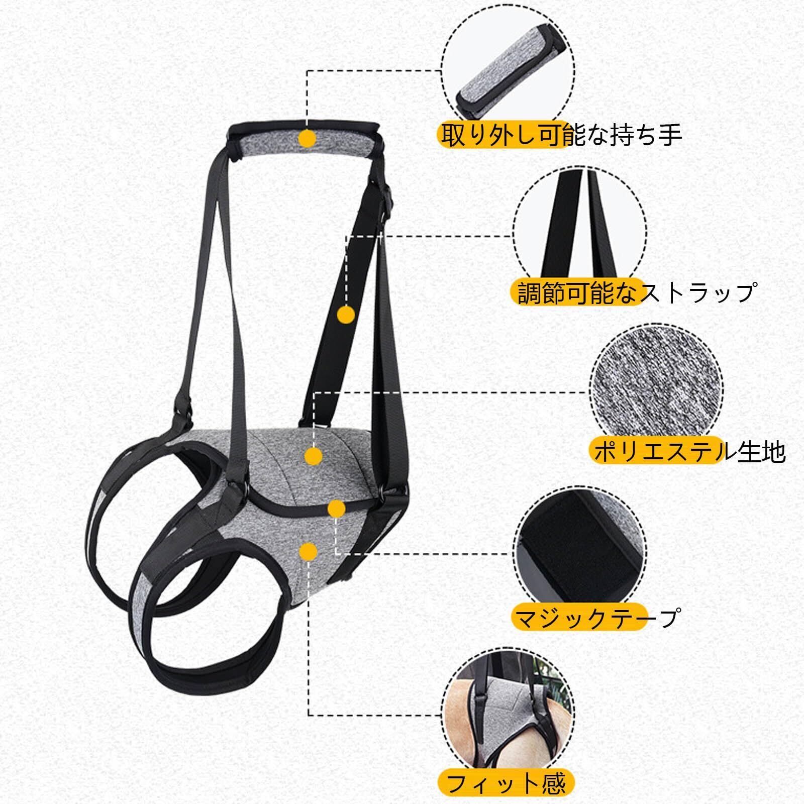 【取り付け、取り外しが簡単】マジックテープで着脱は調整できるしやりやすくていいです。持ちてのリード部分は調節可能なので、飼い主の身長に合わせることができます。人間の足腰に負担なく散歩をする。持ちて部分には別布が付属されているので、痛く無かったです。シンプルで分かりやすい。新しいものを取り入れるのが苦手な人はいい。後ろ足に力が入らない子でも、支えやすかったですね。