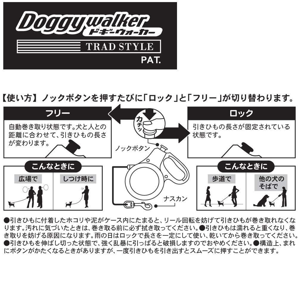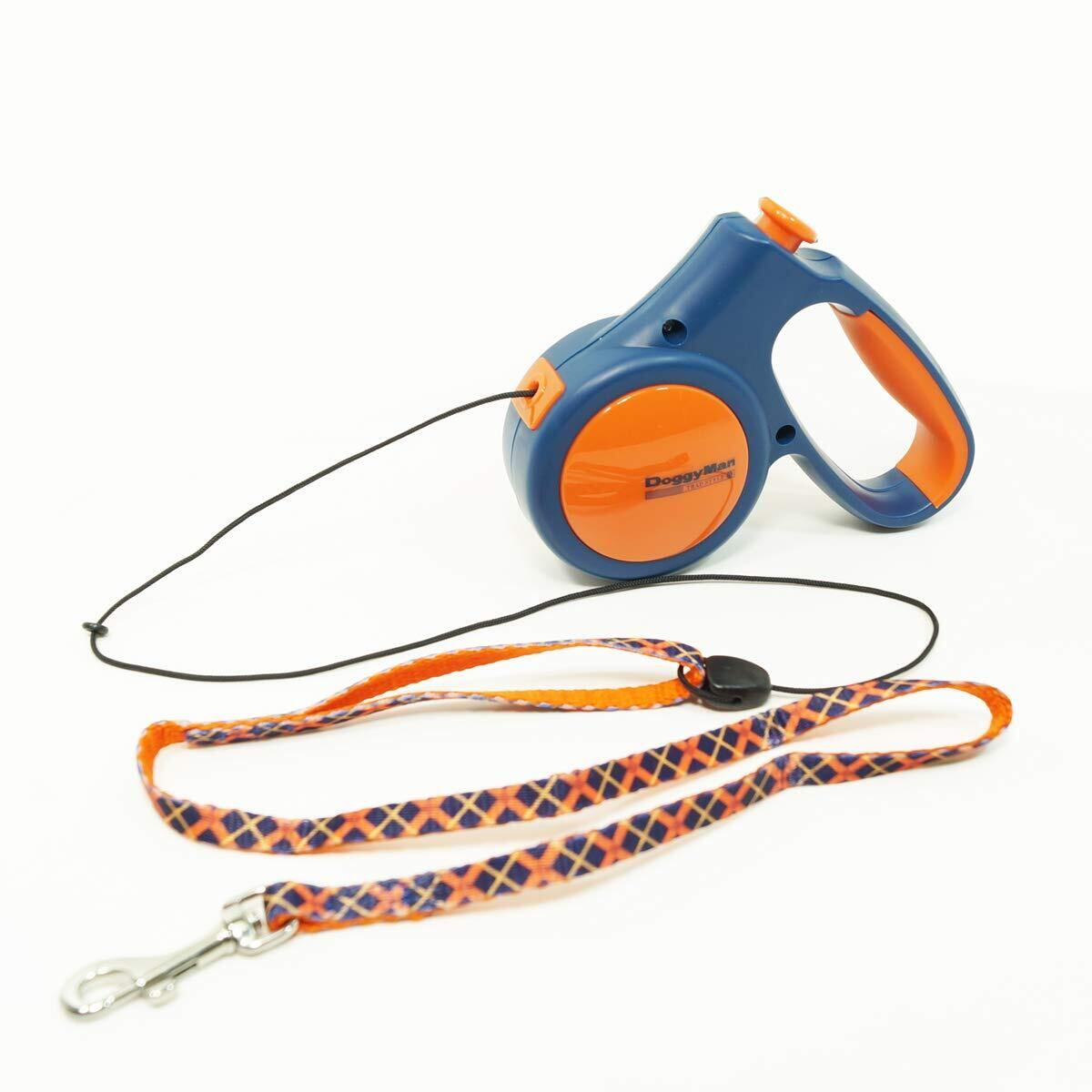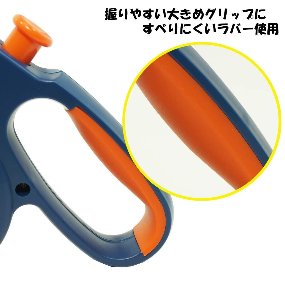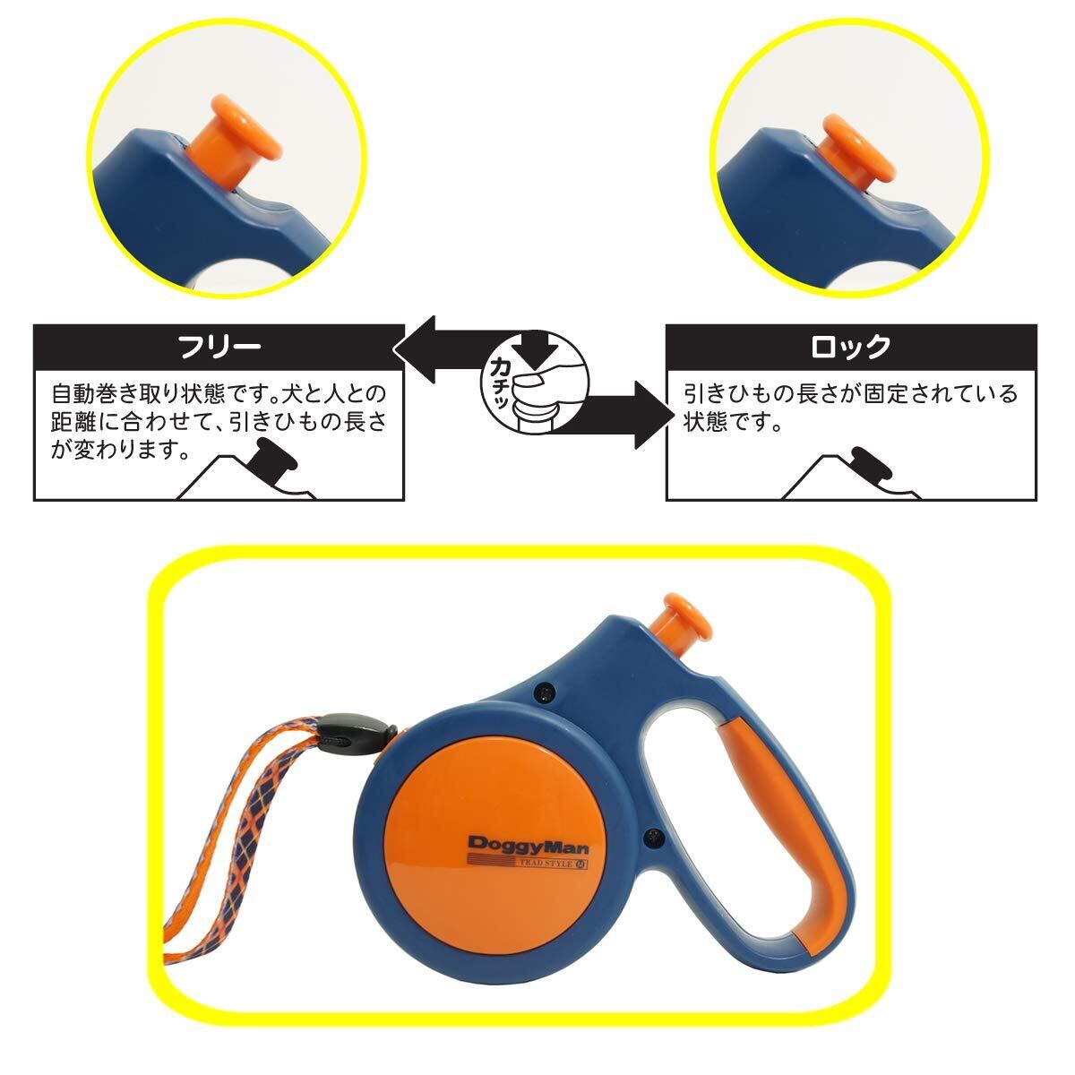 ・体重10kg以下の小型犬用・。丸ヒモ5mの伸縮リール式散歩用リード。・操作はボタン1つで、簡単! 押してロック! 押してフリーで使いやすい! ・握りやすくすべりにくいハンドル部ラバーカバー。