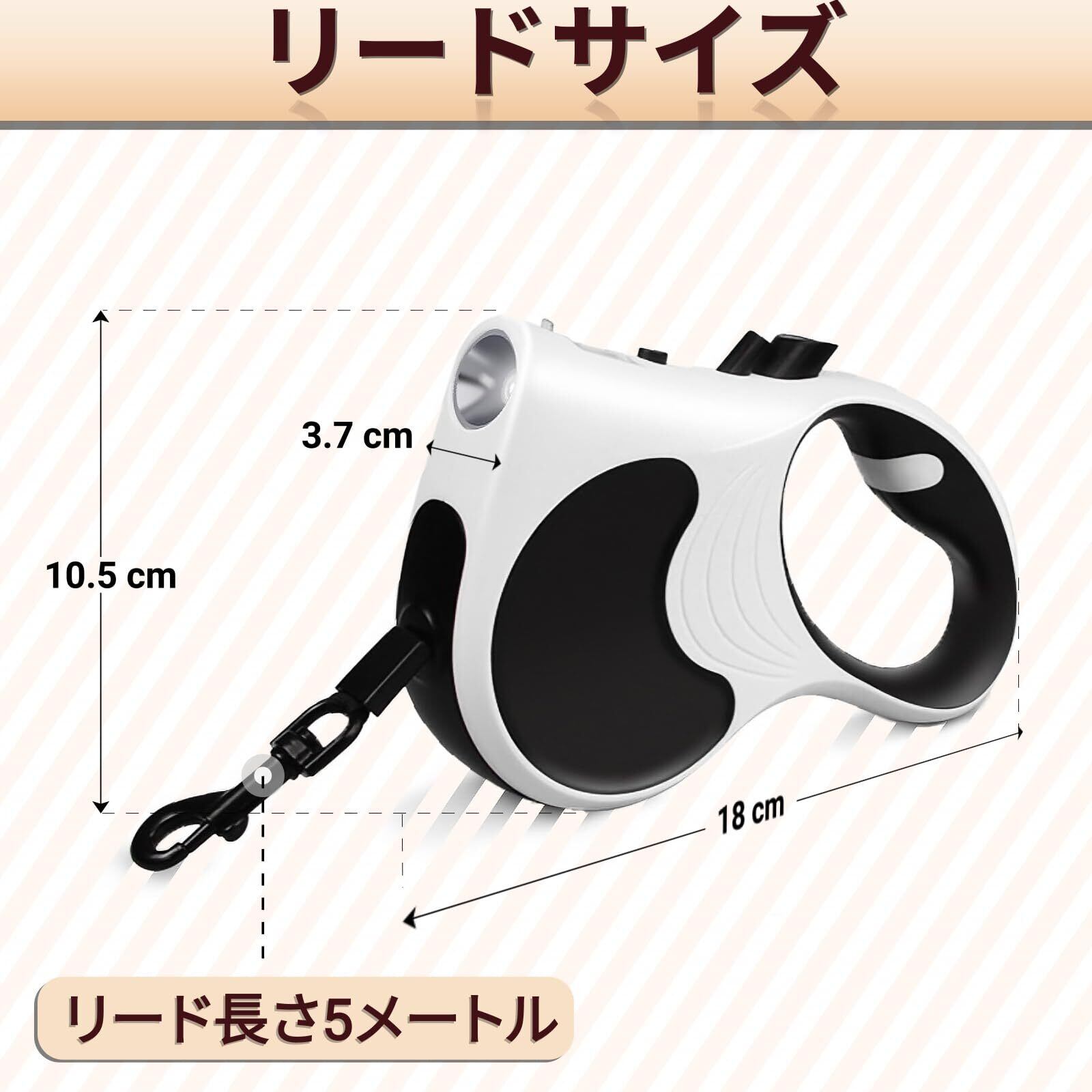 Readaeer 伸縮リード 犬リード LED ライト付き 小型犬 中型犬 長さ5メートル 取り巻き式 コンパクト(ホワイト)