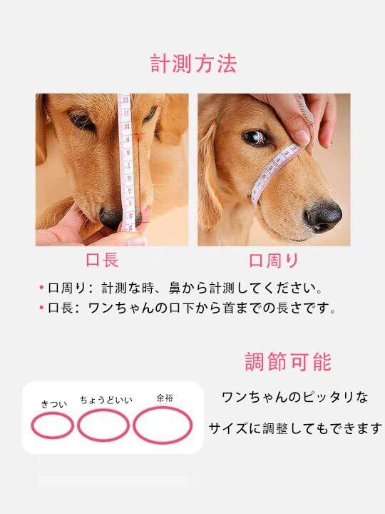 愛犬に優しい口輪、 通気性のいいナイ口ン素材を、 使用しているので、 拾い食い、噛みグセ 、キズ舐め、 むだ吠えなど防止できます