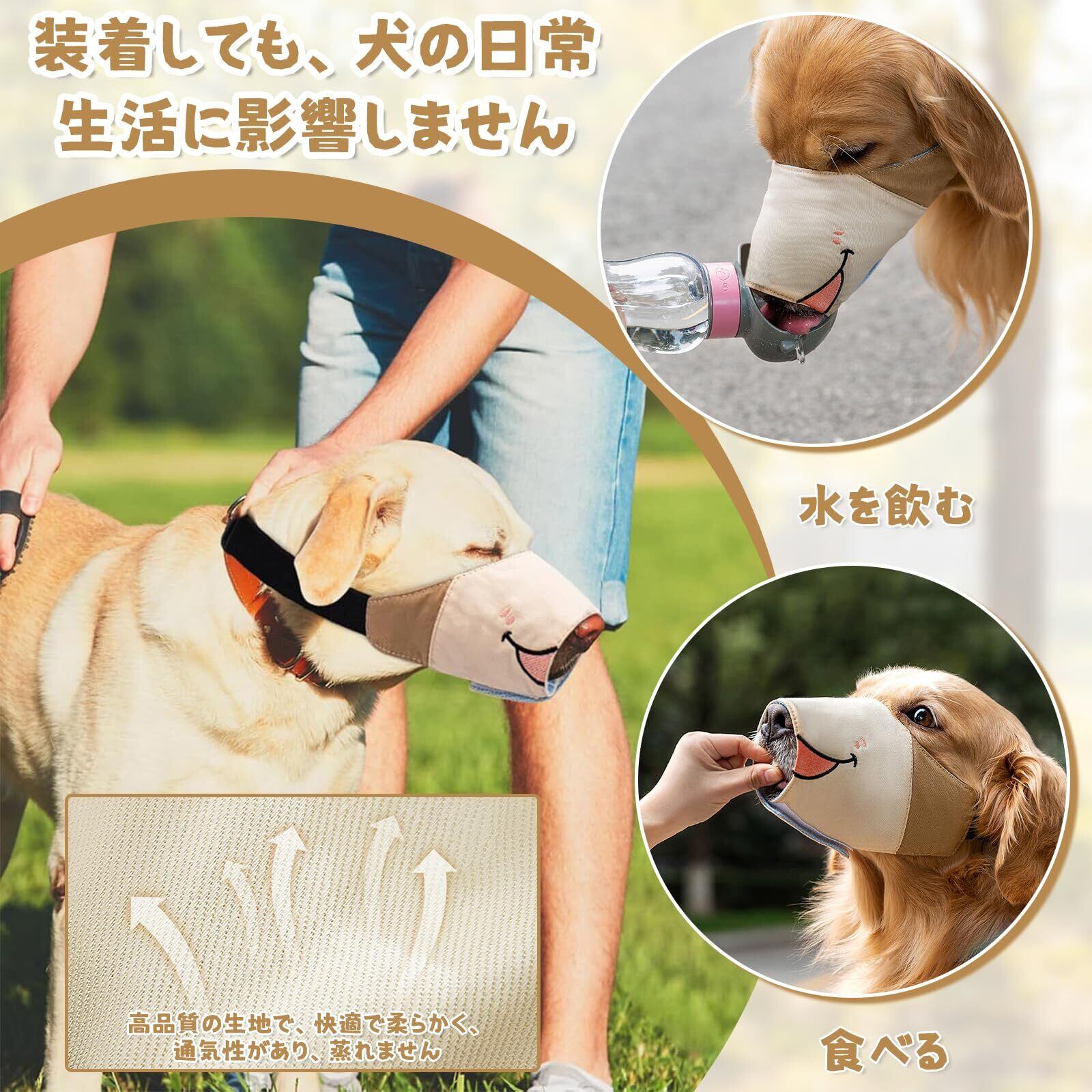 【在庫処分】Charming Club 口輪 犬用マズル ベージュ 4サイズ 無駄吠え癖対策 噛みつき 拾い食い防止 通気性よい サイズ調整可能 可愛い 小型犬 中型犬 大型犬対応 マジックテープ 着脱しやすい ワンちゃん外出用(ベージュ-熊(´(ェ)`), M)